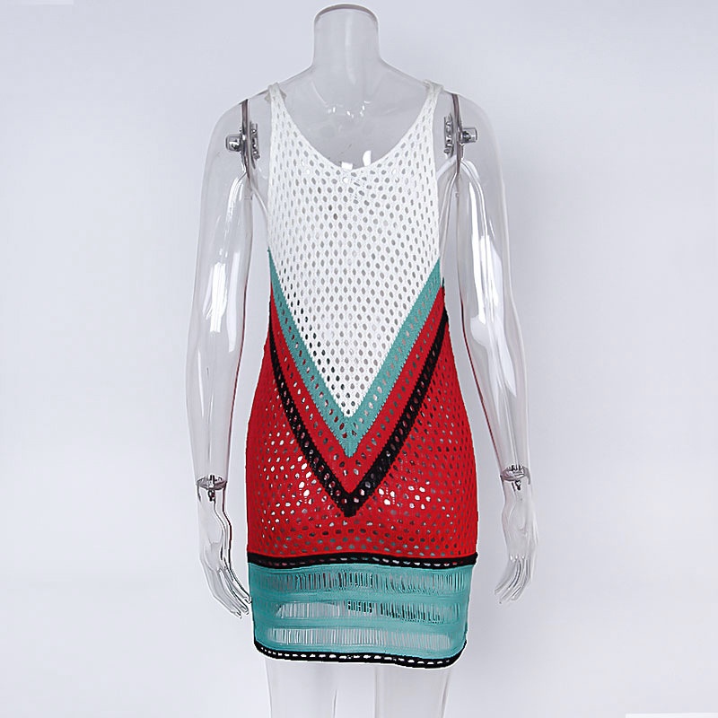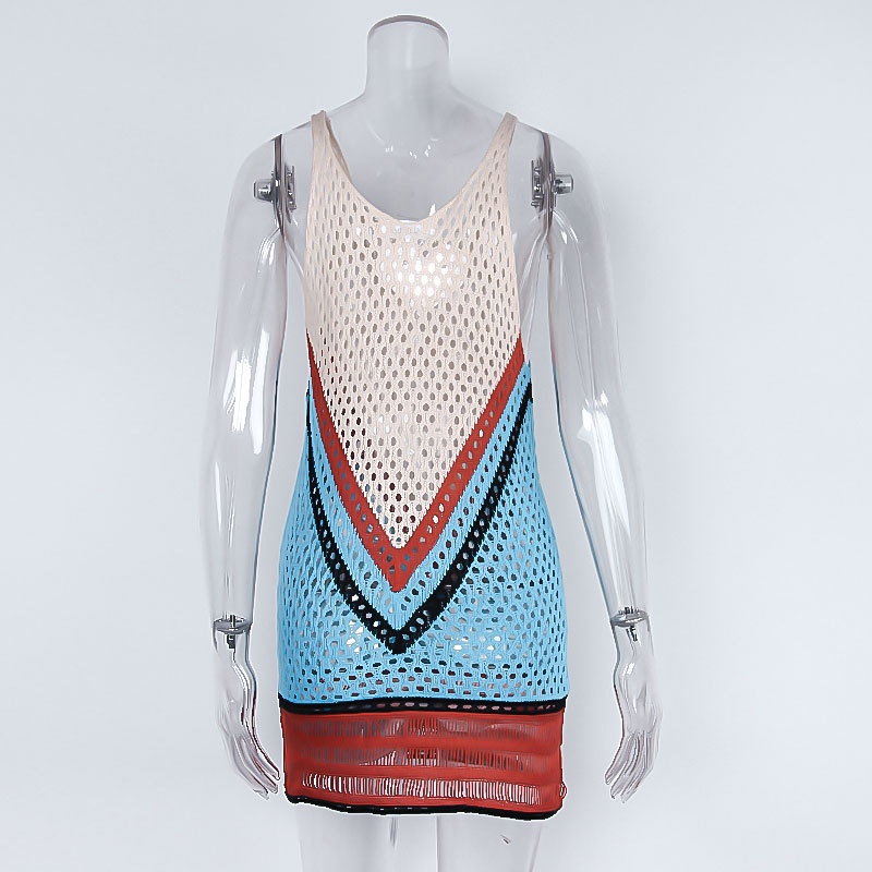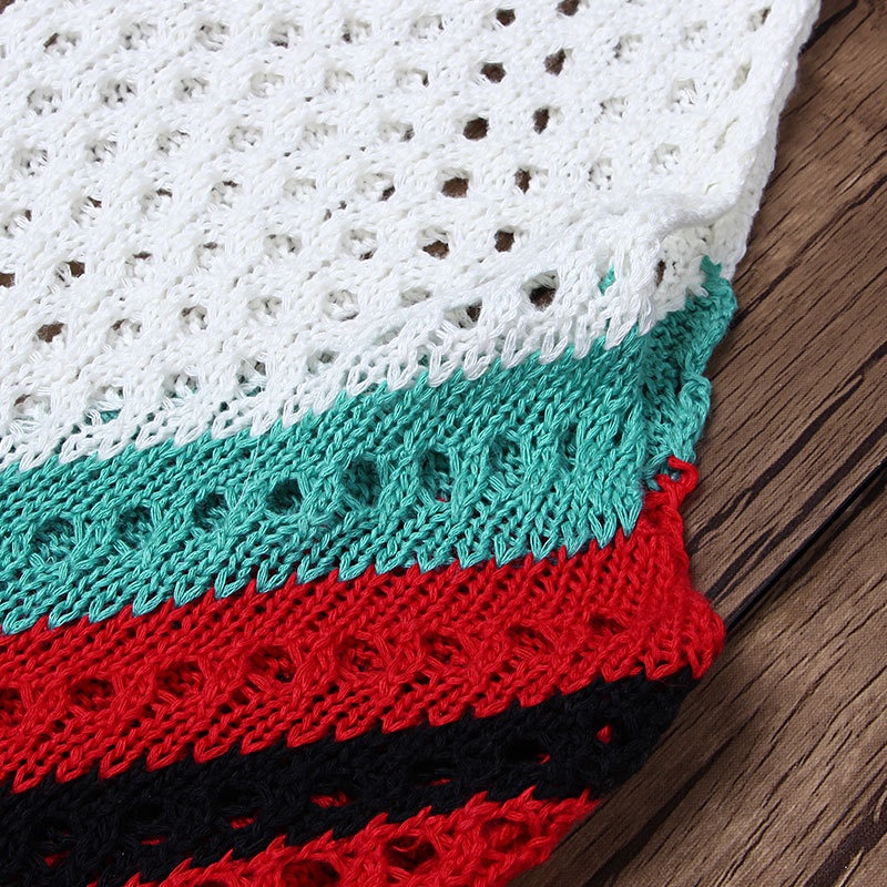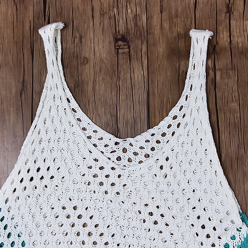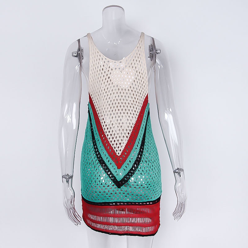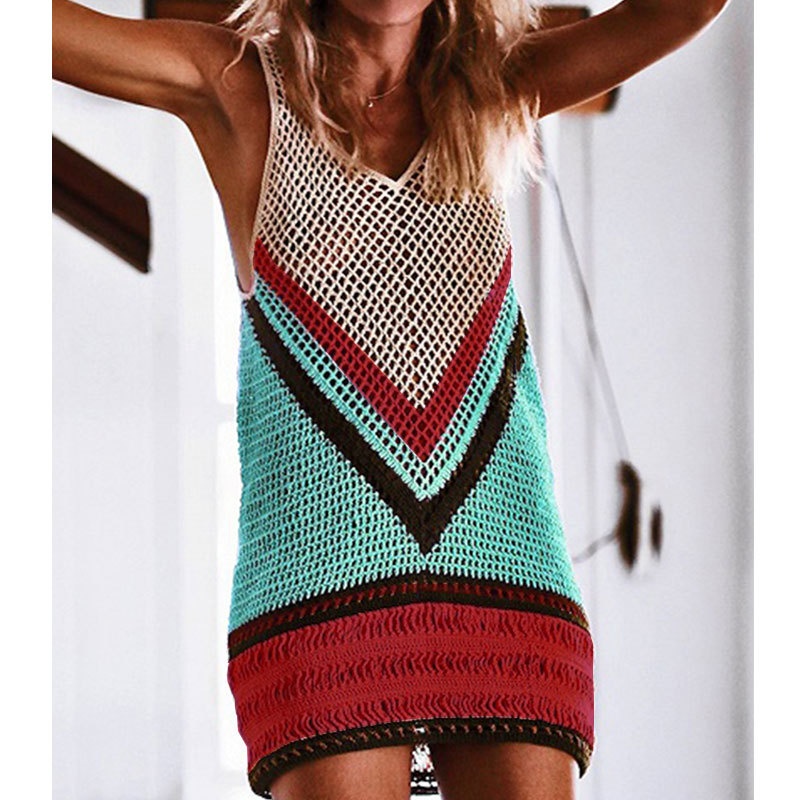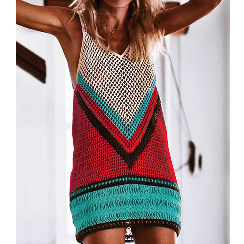跨境欧美沙滩女士罩衫手钩针织镂空彩色拼接比基尼泳衣裙防晒衣女