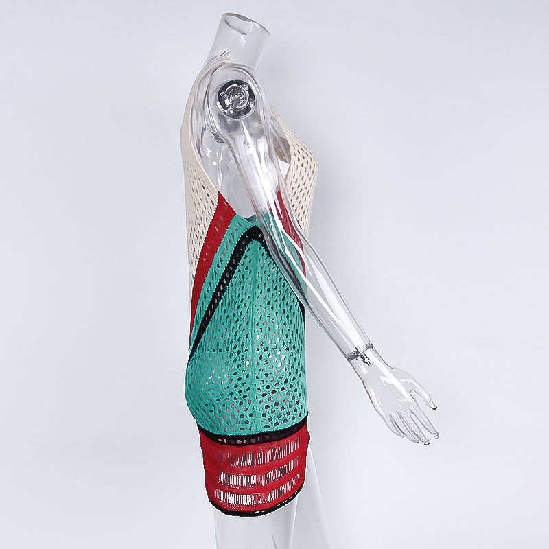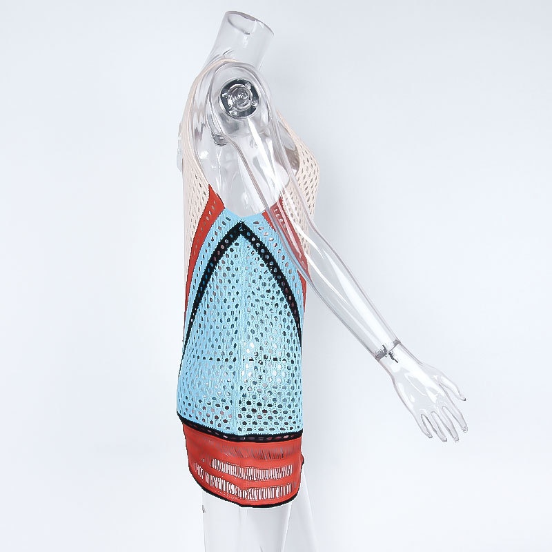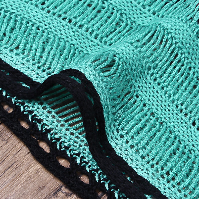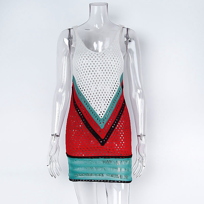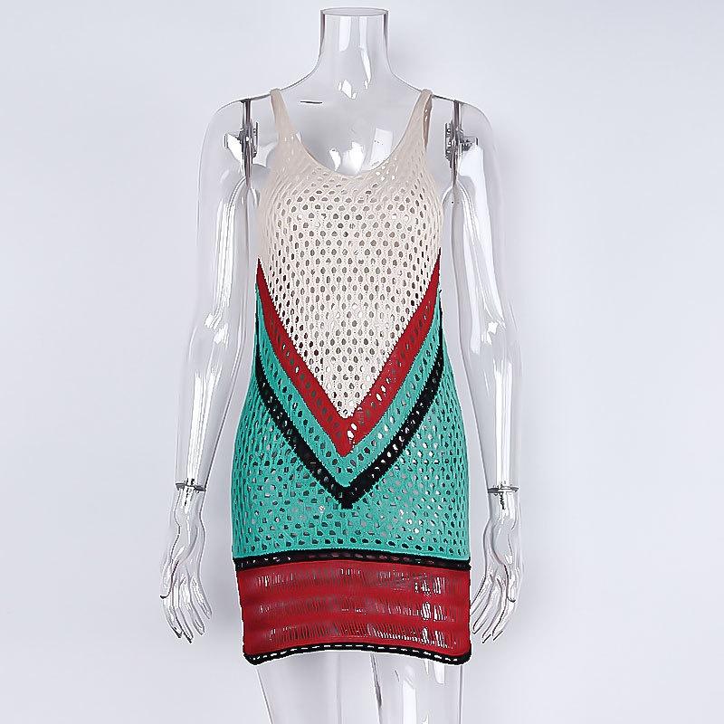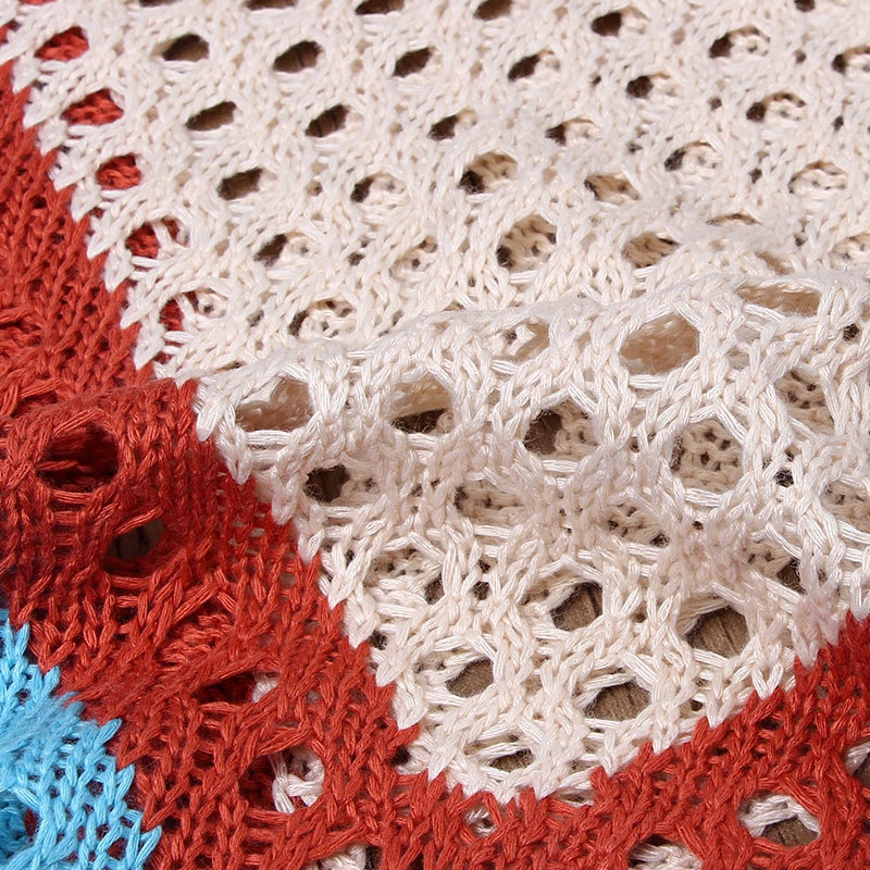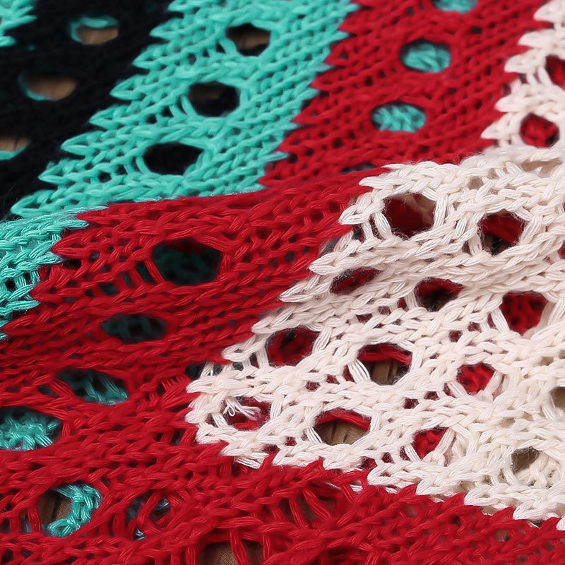 跨境欧美沙滩女士罩衫手钩针织镂空彩色拼接比基尼泳衣裙防晒衣女