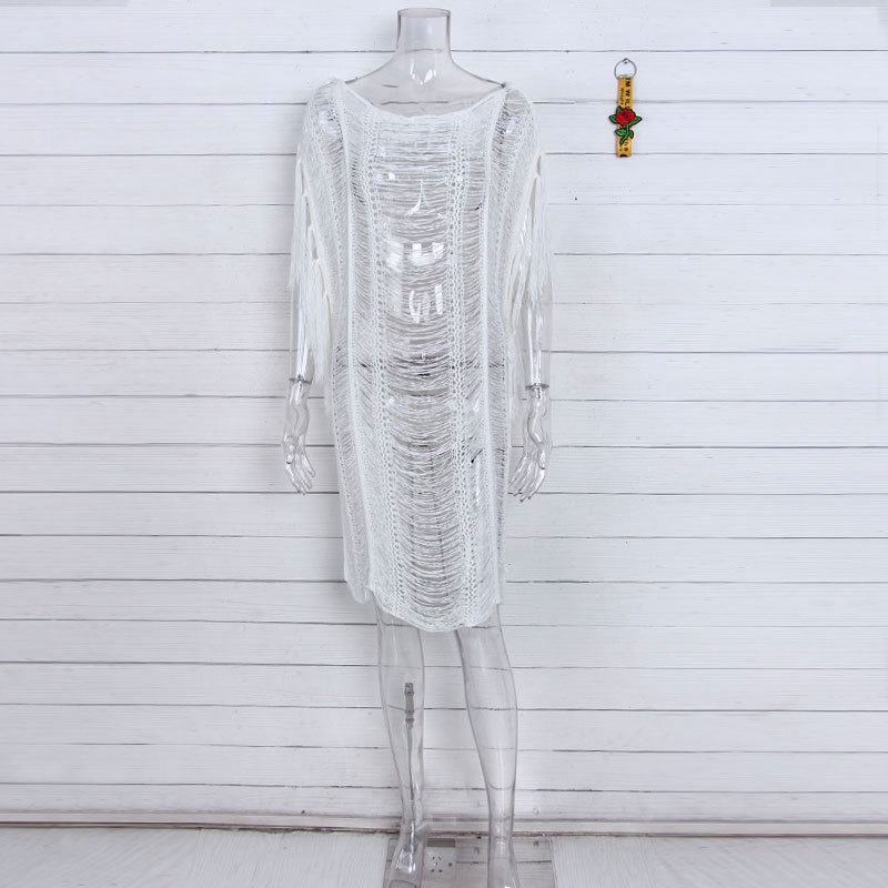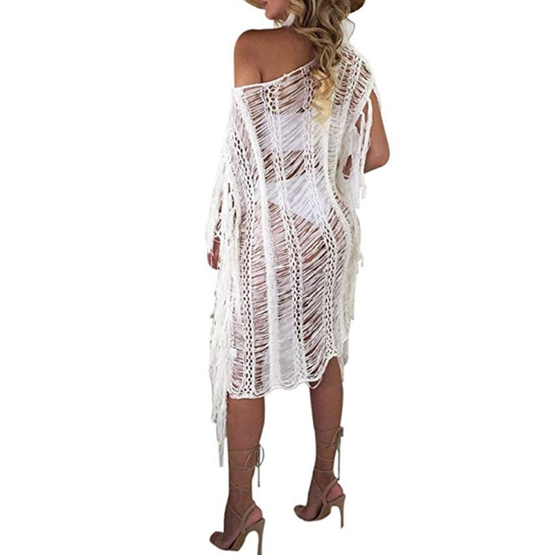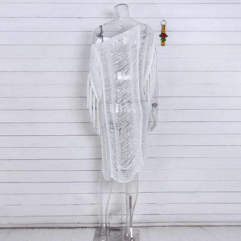 夏季泳装新款跨境流苏沙滩裙欧美性感透视镂空沙滩罩衫女装