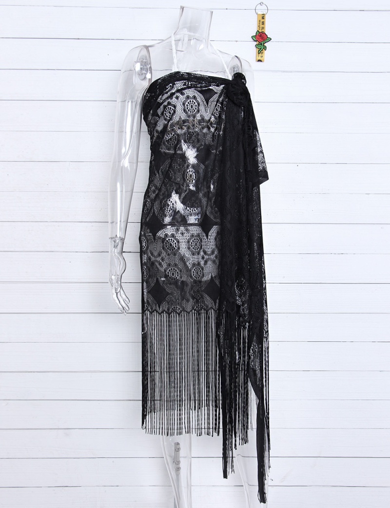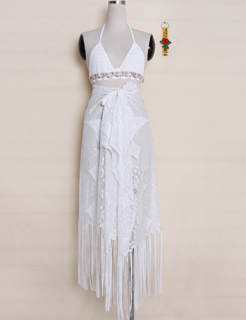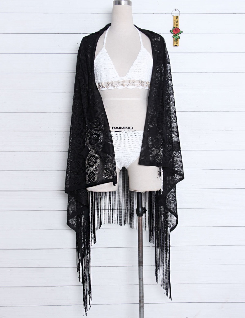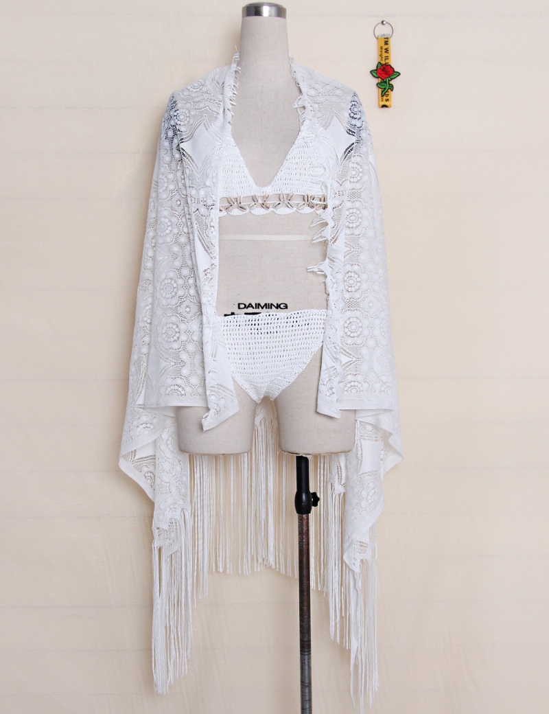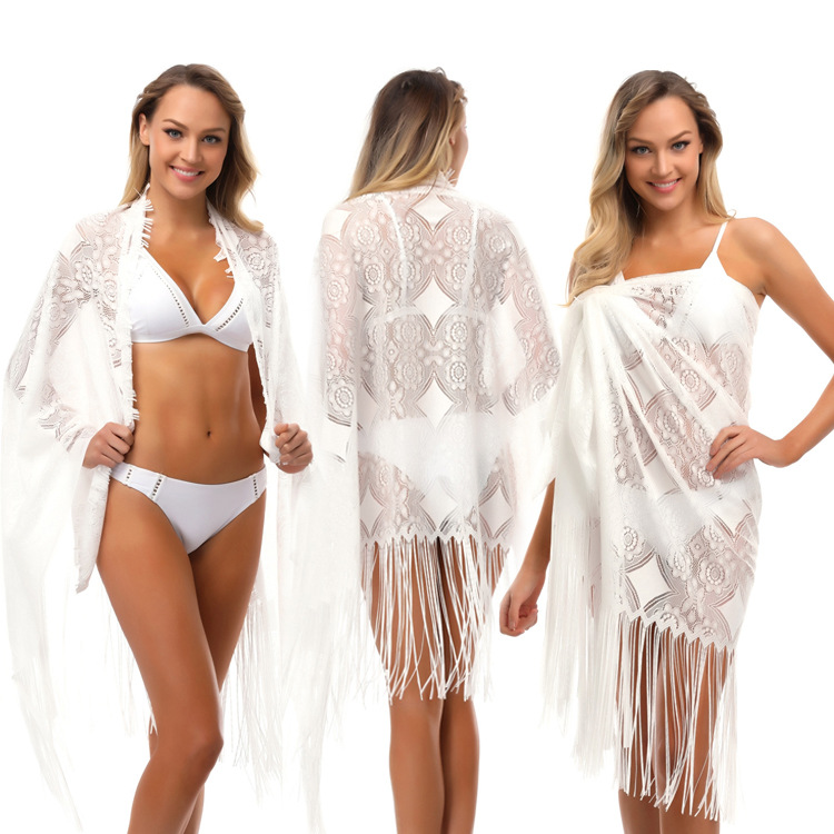 夏季新款跨境欧美泳衣流苏性感蕾丝沙滩防晒衣比基尼罩衫女