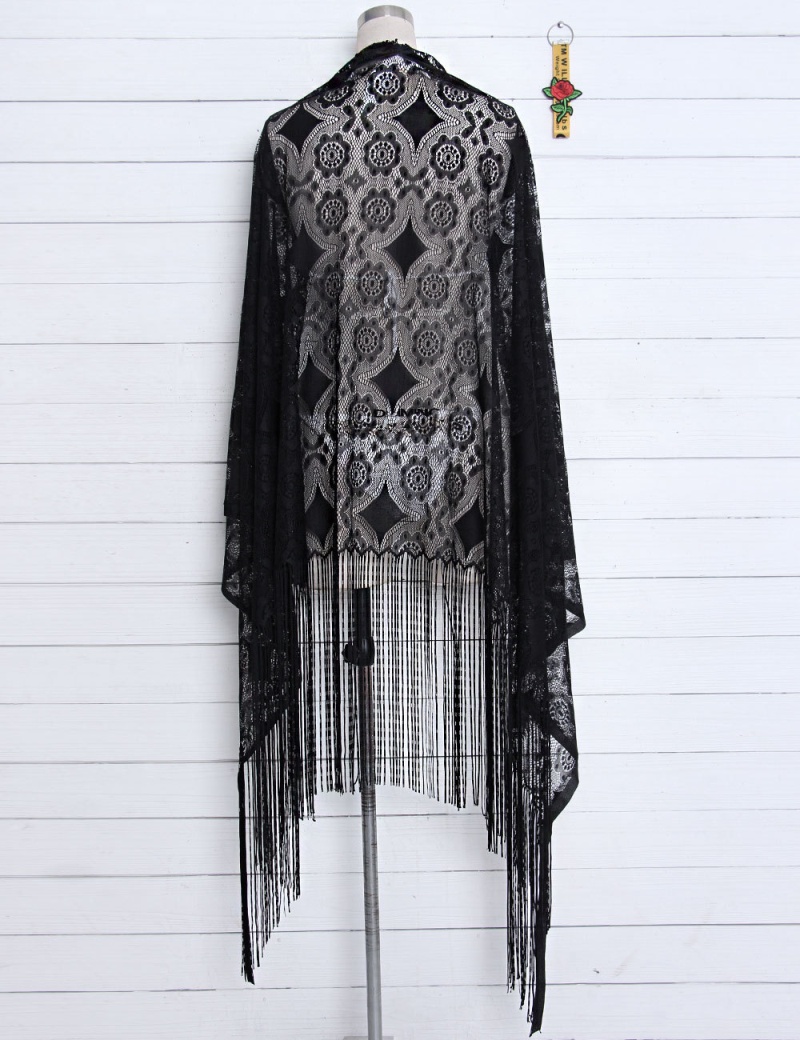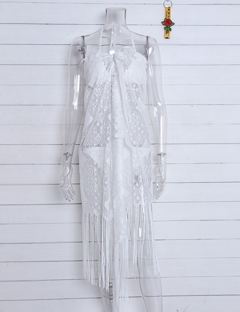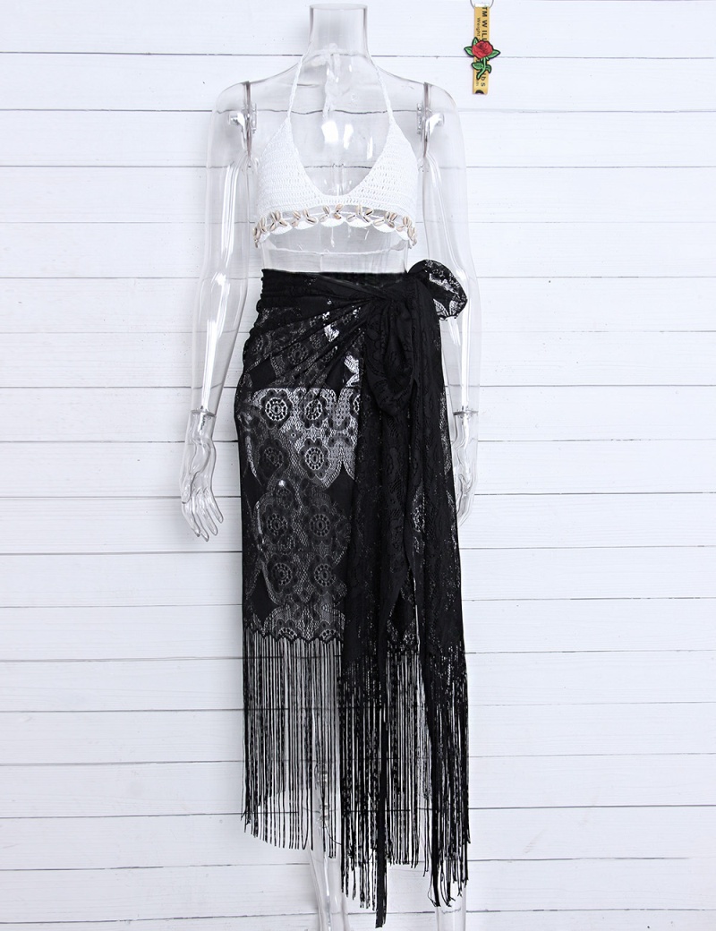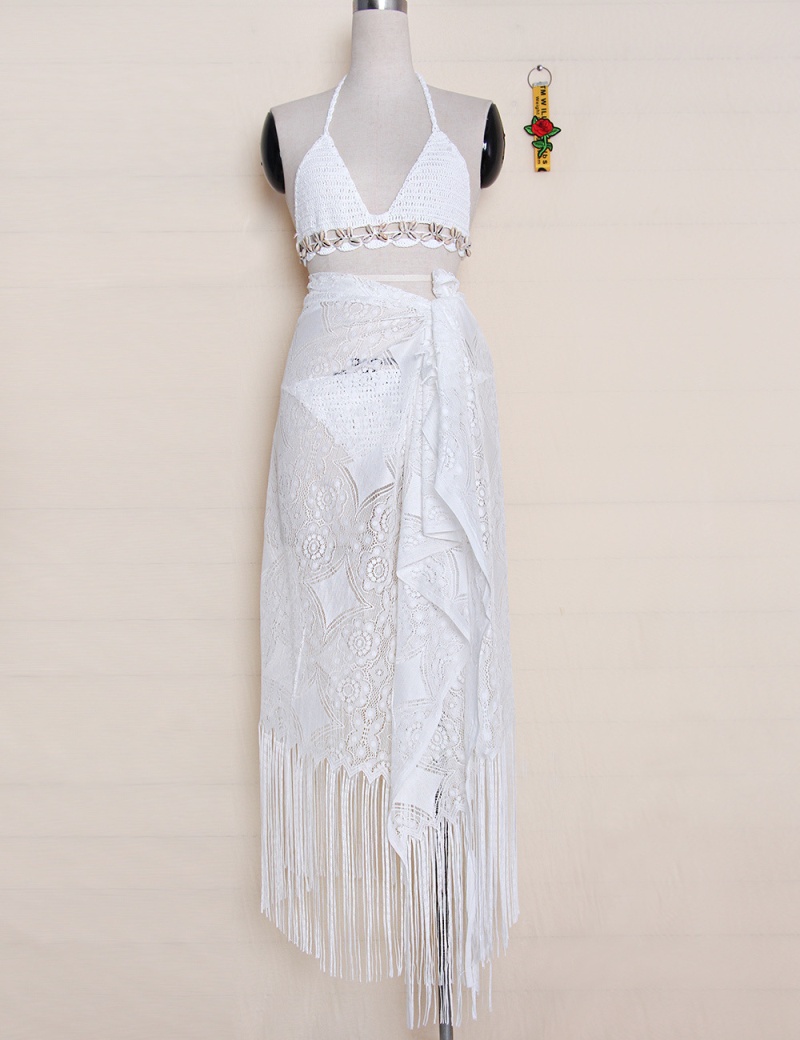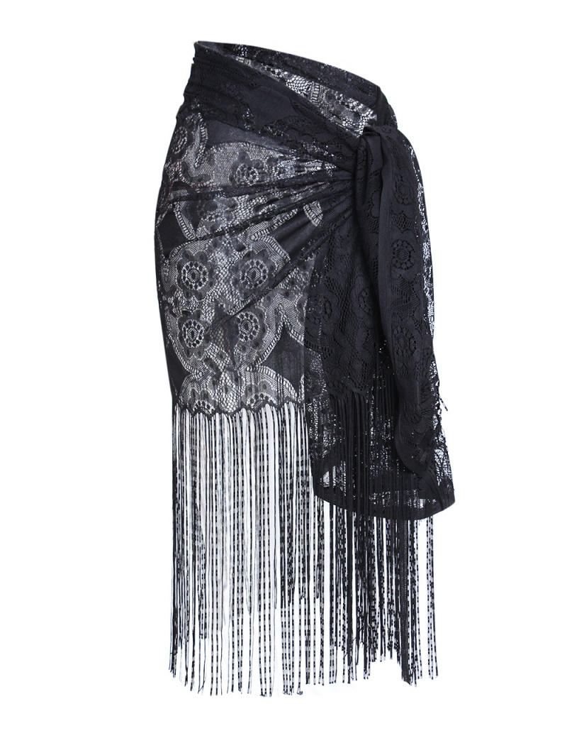 夏季新款跨境欧美泳衣流苏性感蕾丝沙滩防晒衣比基尼罩衫女