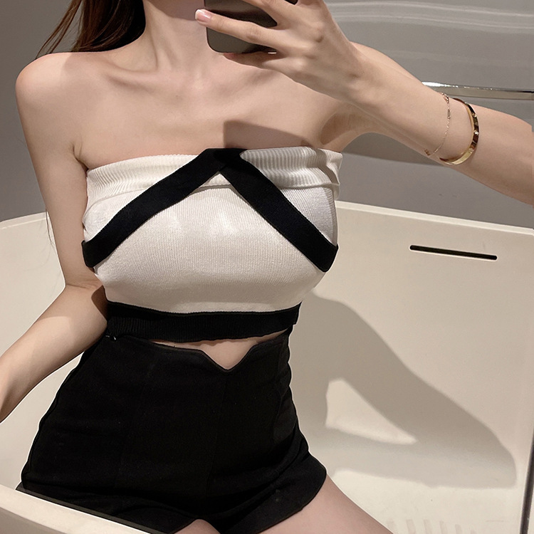 撞色抹胸一字肩上衣打底衫内搭高腰性感修身小众吊带背心女外穿潮