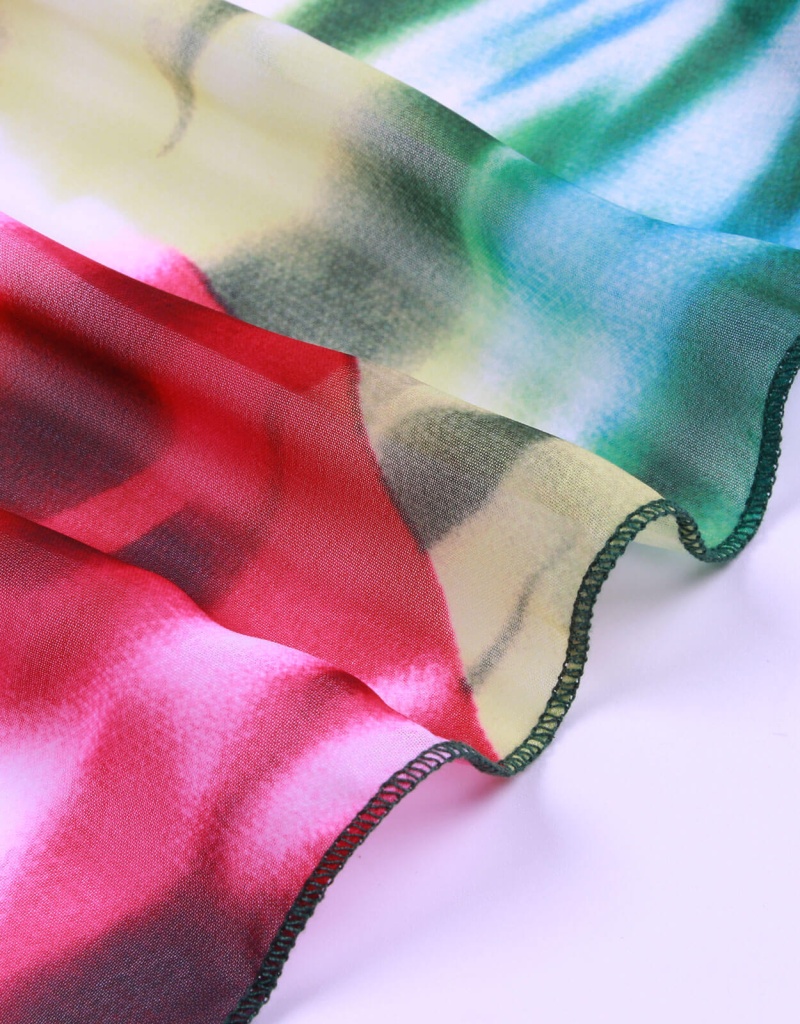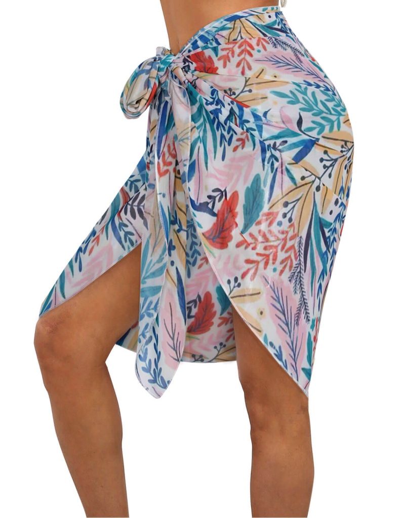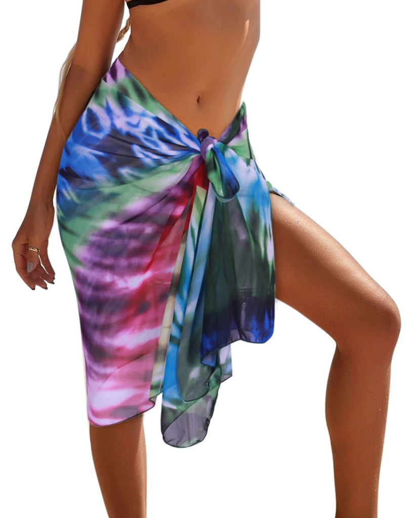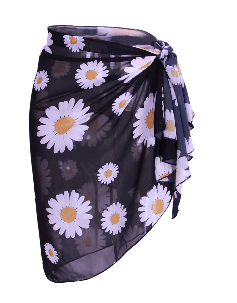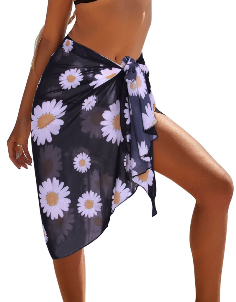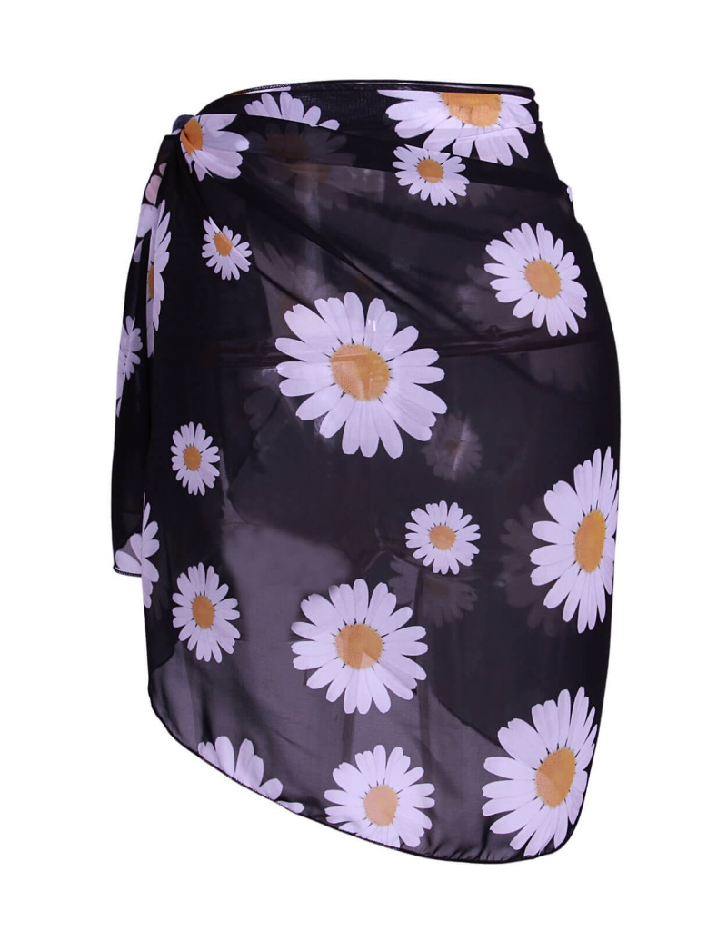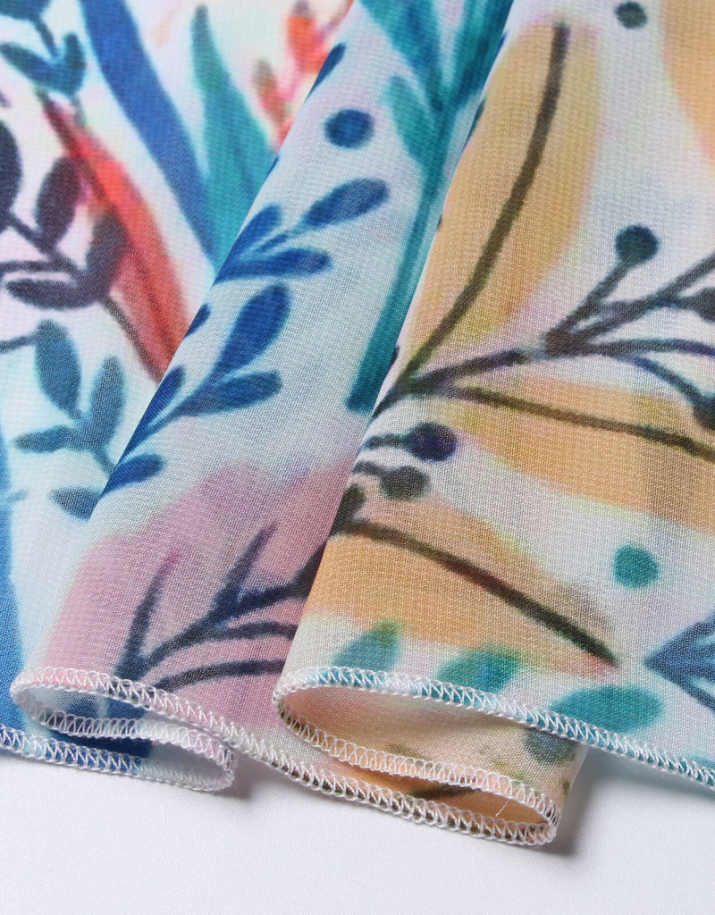 洋洋夏季跨境欧美沙滩罩衫性感雪纺印花比基尼泳装沙滩裙女