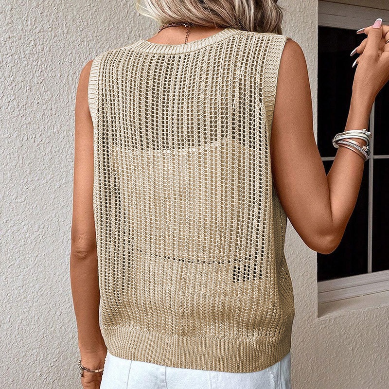 洋洋夏季欧美沙滩罩衫 跨境时尚无袖V领针织背心比基尼罩衫