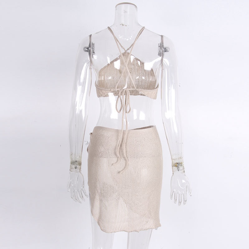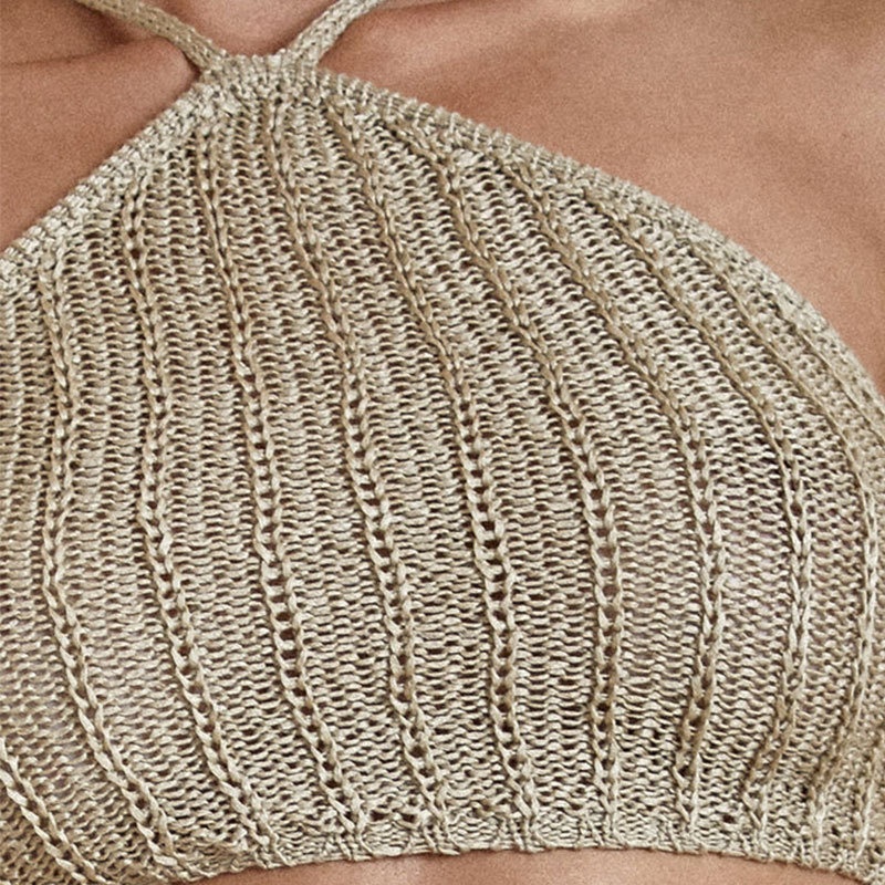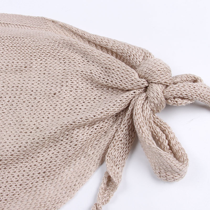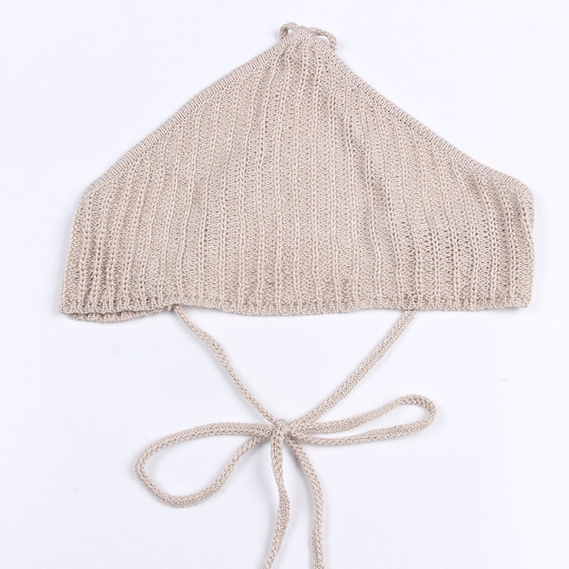 夏季短款纯色法式针织薄款挂脖吊带性感辣妹外穿露背加工定制上衣