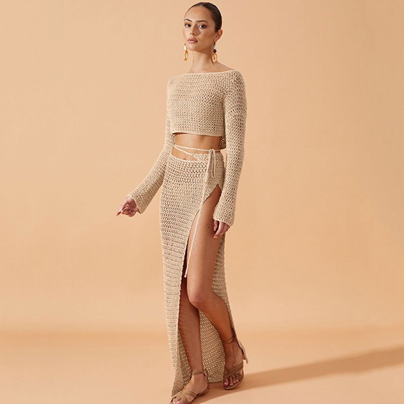 跨境新款欧美长袖短款上衣沙滩罩衫性感比基尼泳衣罩裙防晒套装女