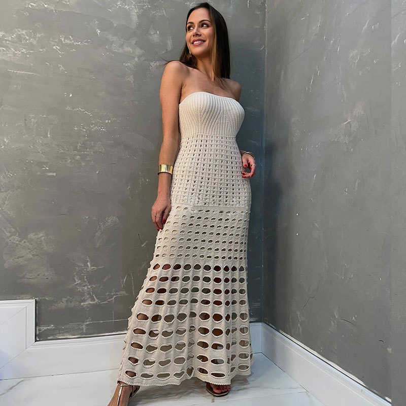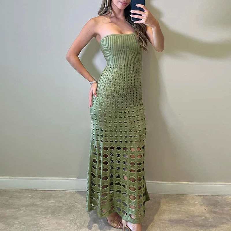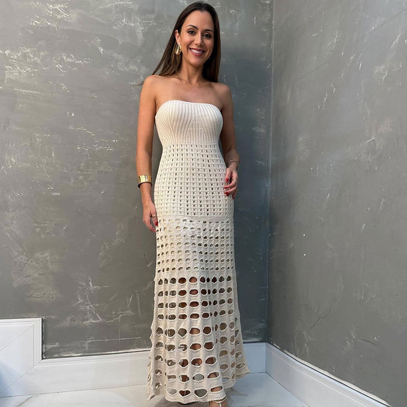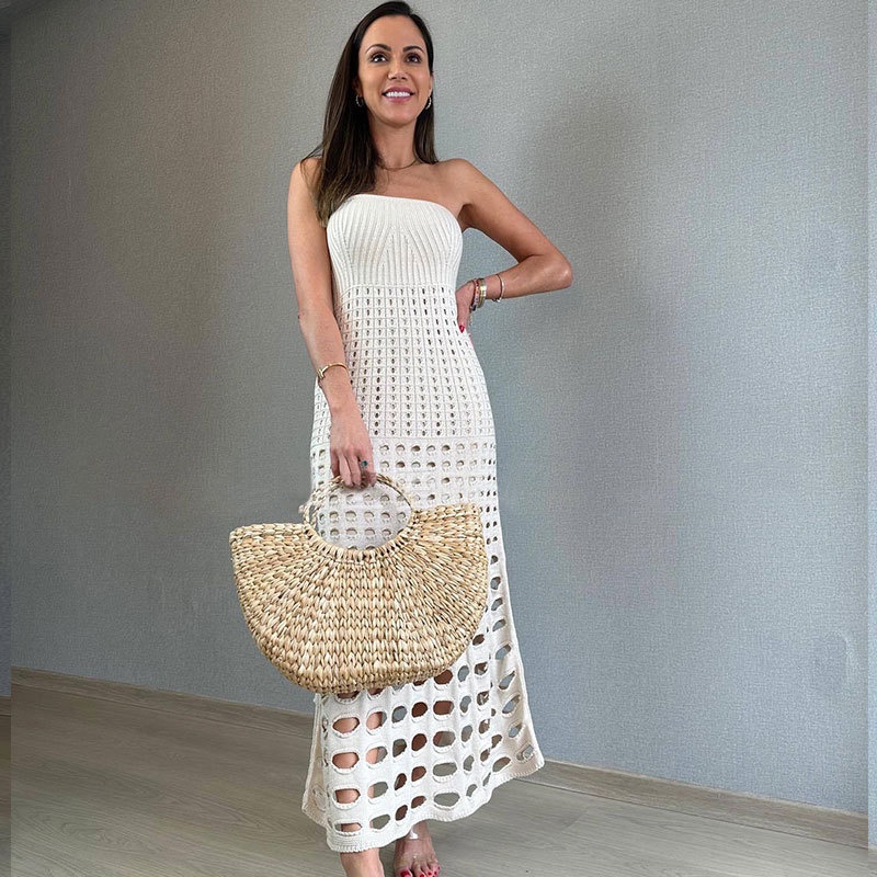 洋洋跨境欧美新款沙滩罩衫抹胸一步海边性感紧身连衣沙滩裙