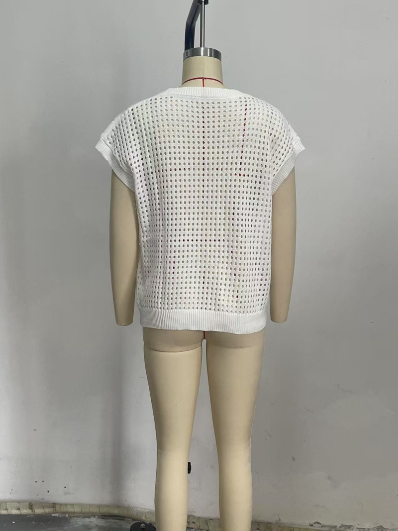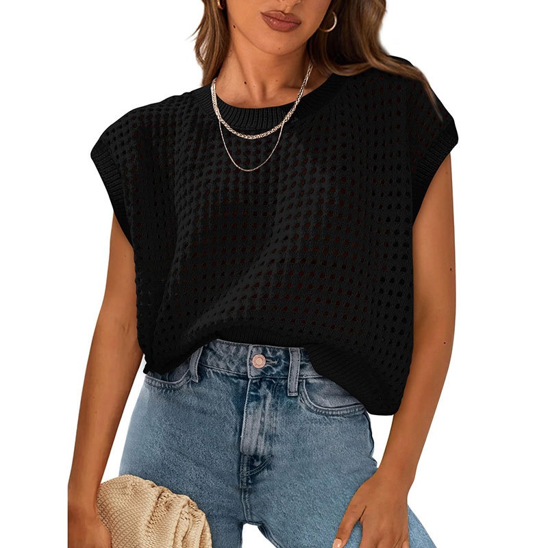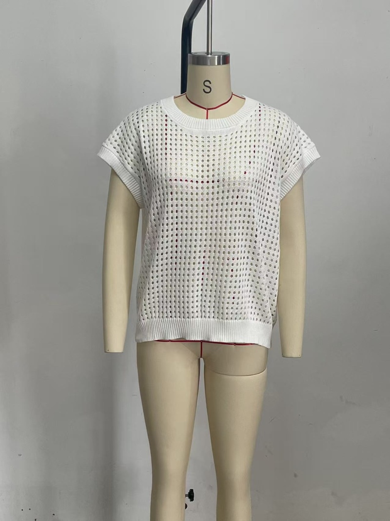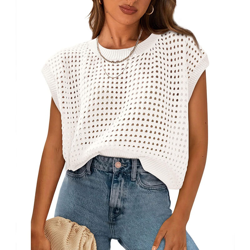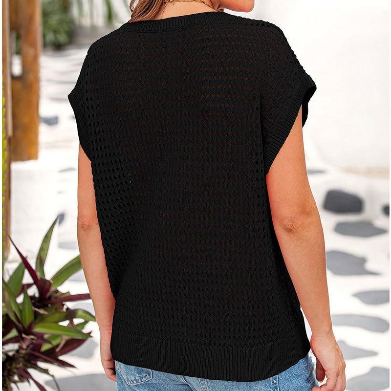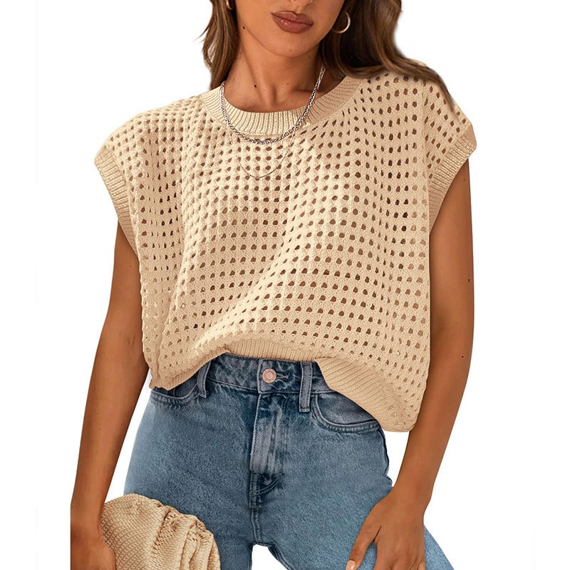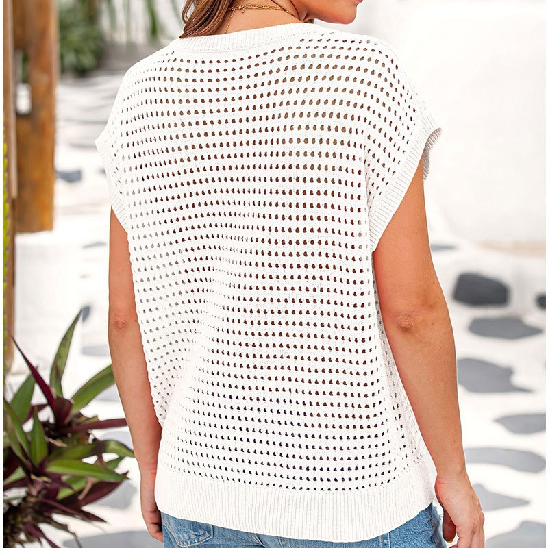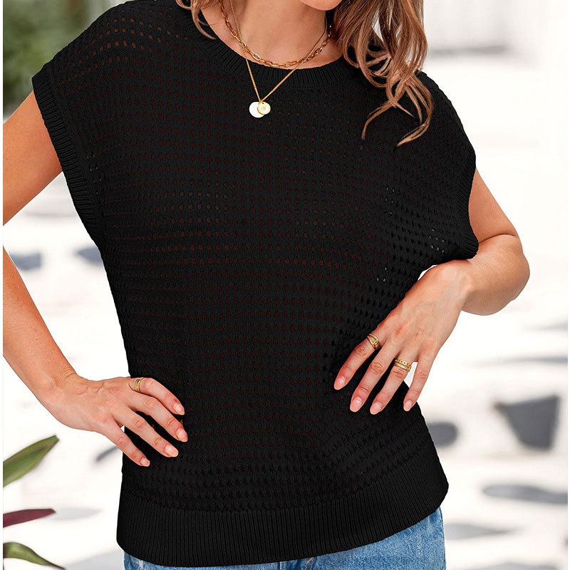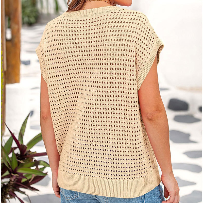 洋洋夏季新款跨境欧美女装女士圆领镂空防晒针织毛衣罩衫厂