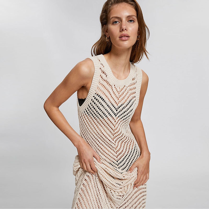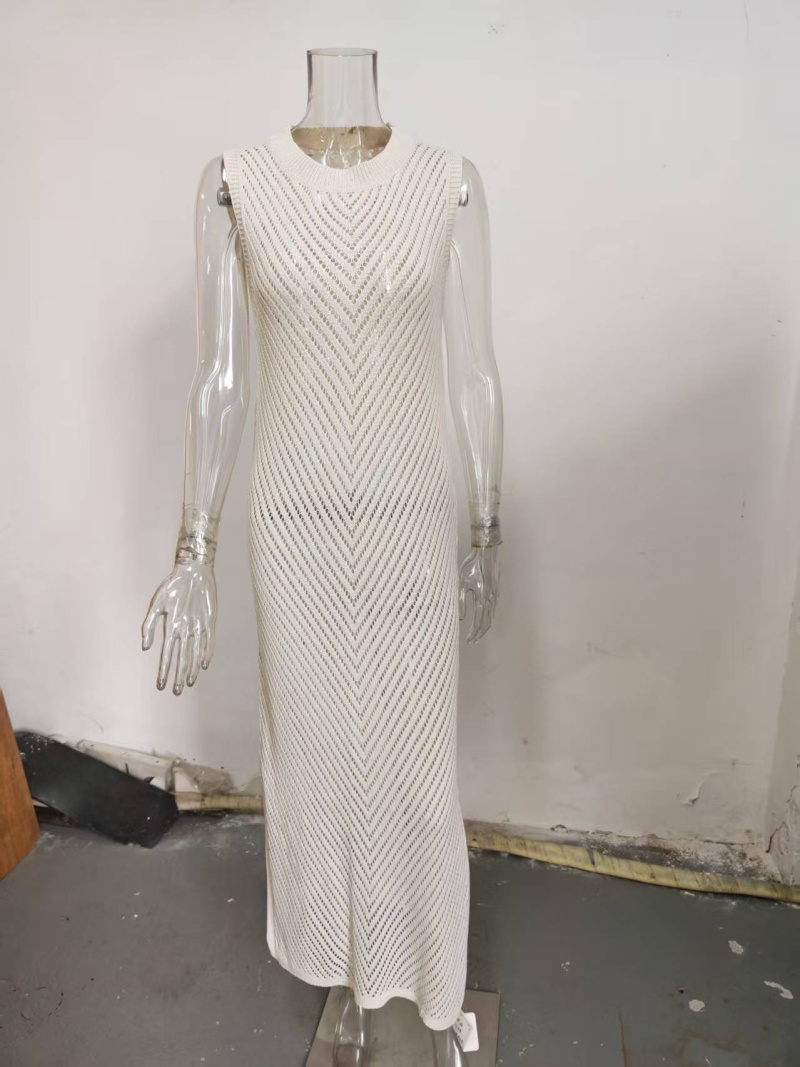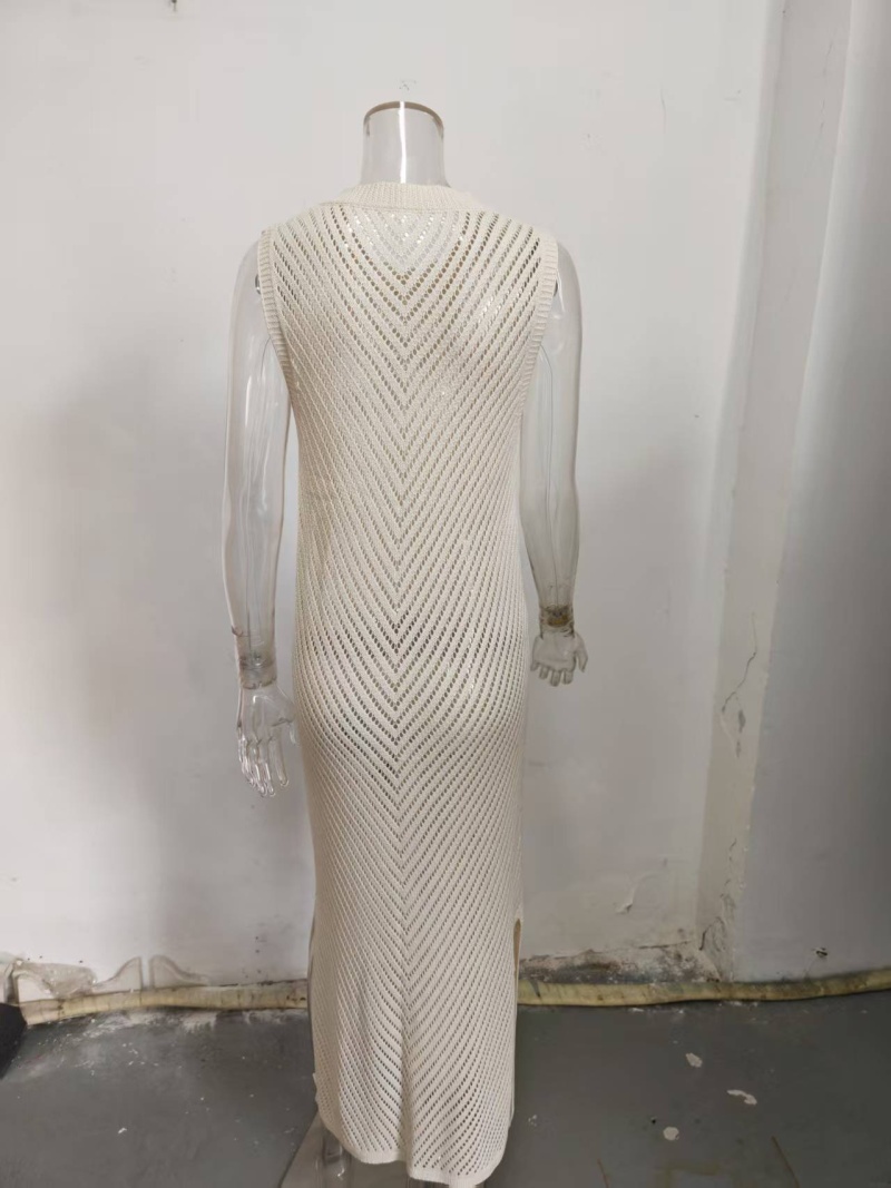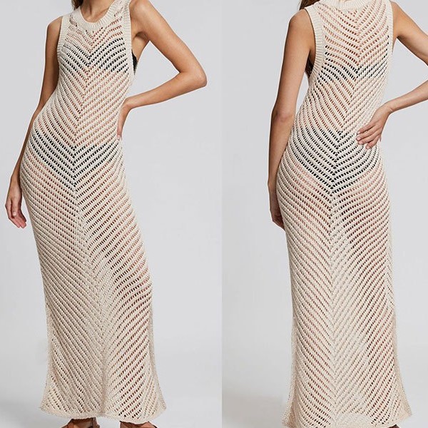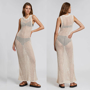 洋洋跨境欧美新款沙滩裙性感针织镂空度假长款比基尼外搭泳衣罩衫