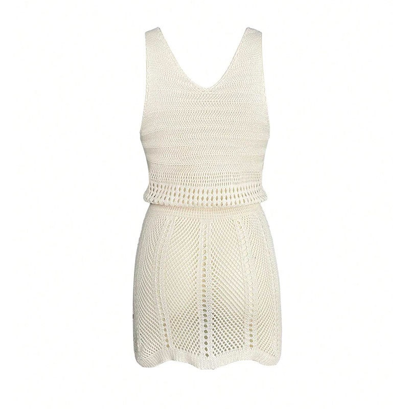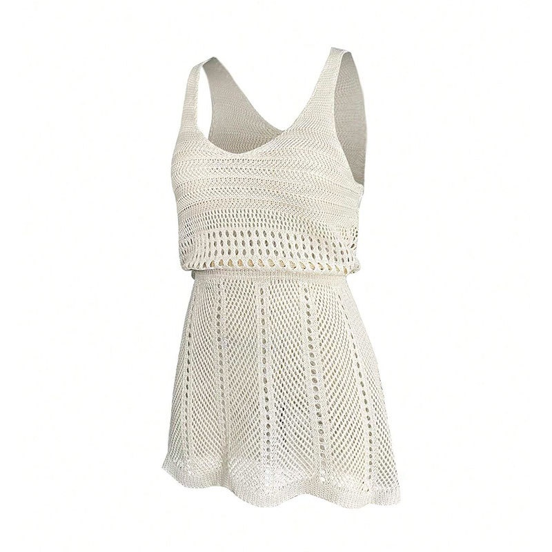 洋洋新款跨境欧美镂空针织性感吊带收腰海边度假沙滩罩衫厂