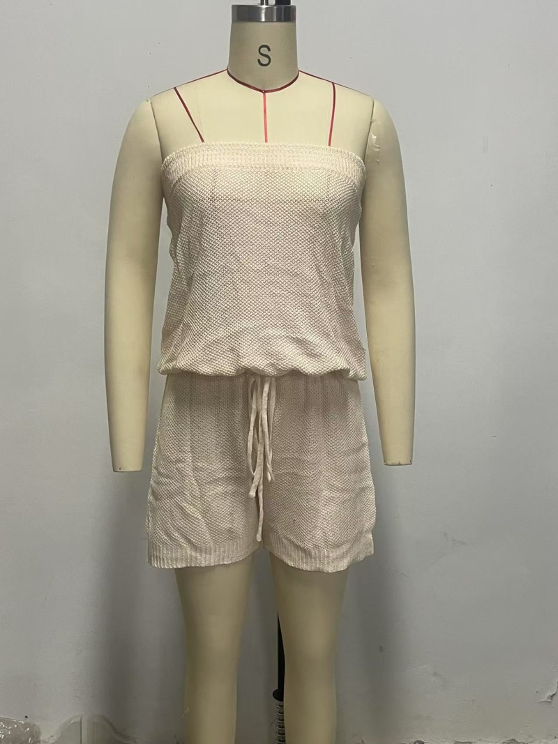 洋洋新款沙滩罩衫跨境欧美纯色性感抹胸抽绳连体裤防晒服女