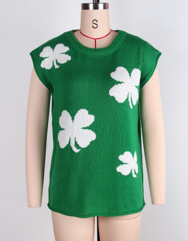 洋洋夏季新款跨境欧美宽松女装枫叶绣花圆领套头短袖针织衫