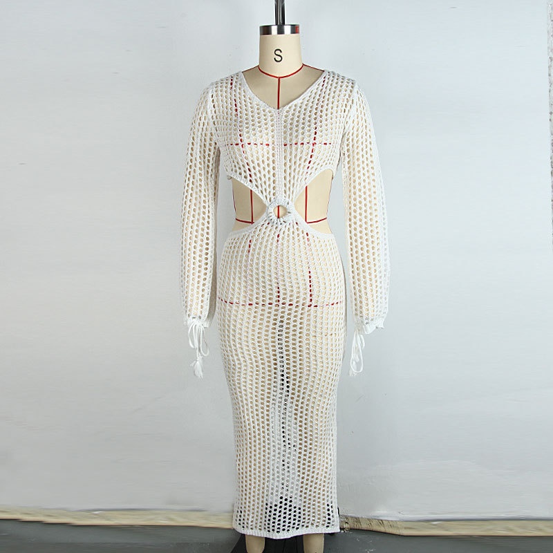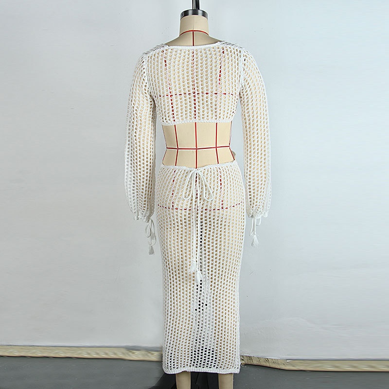 洋洋欧美沙滩罩衫跨境海边度假性感镂空露背沙漏型沙滩长款防晒衫