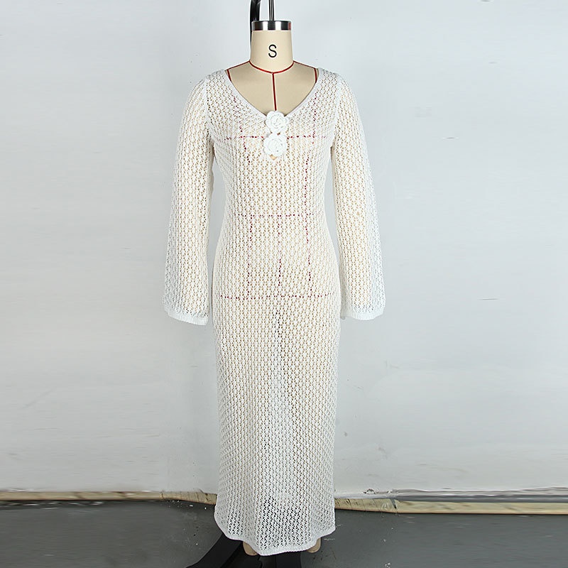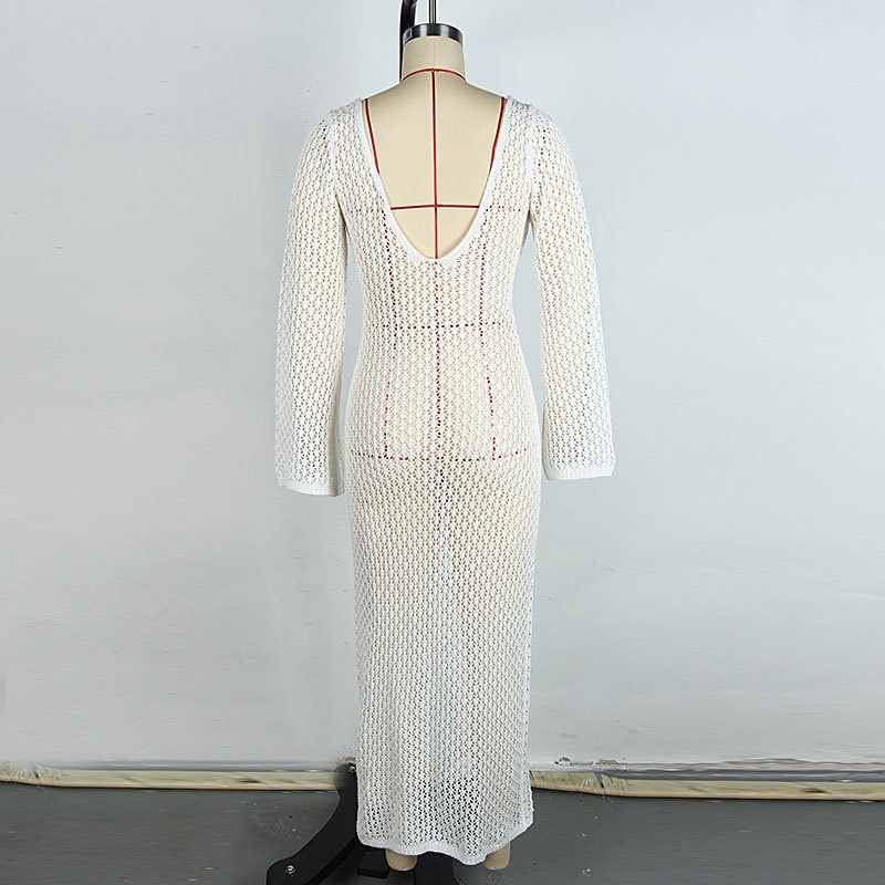 洋洋欧美夏季沙滩罩衫跨境纯色性感镂空比基尼泳衣沙滩裙防晒服女