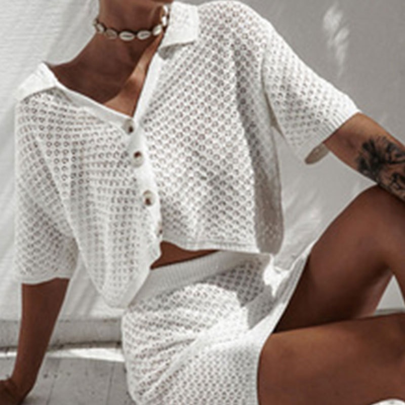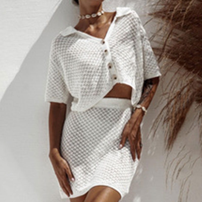 洋洋欧美跨境夏季新款短袖针织短裙套装休闲时尚热卖款两件套女装