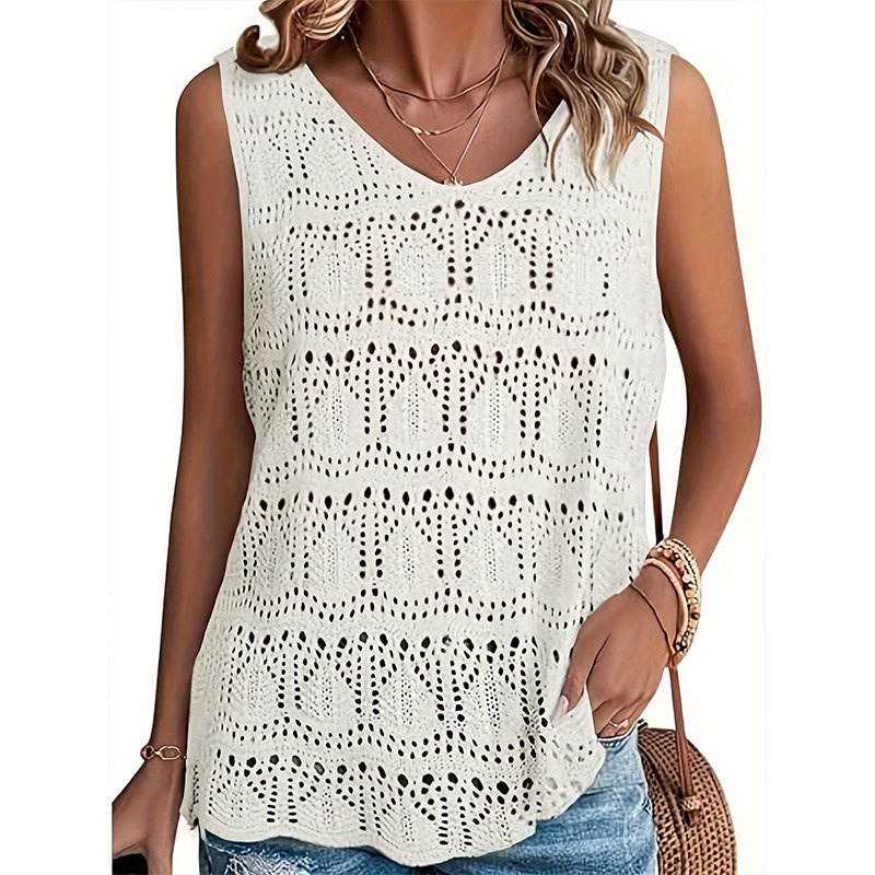 洋洋欧美夏季新款沙滩罩衫 跨境针织镂空背心V领沙滩防晒衣