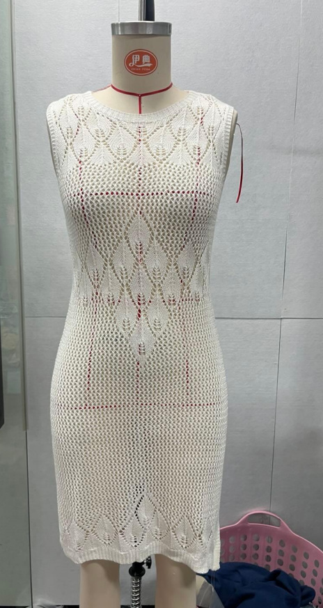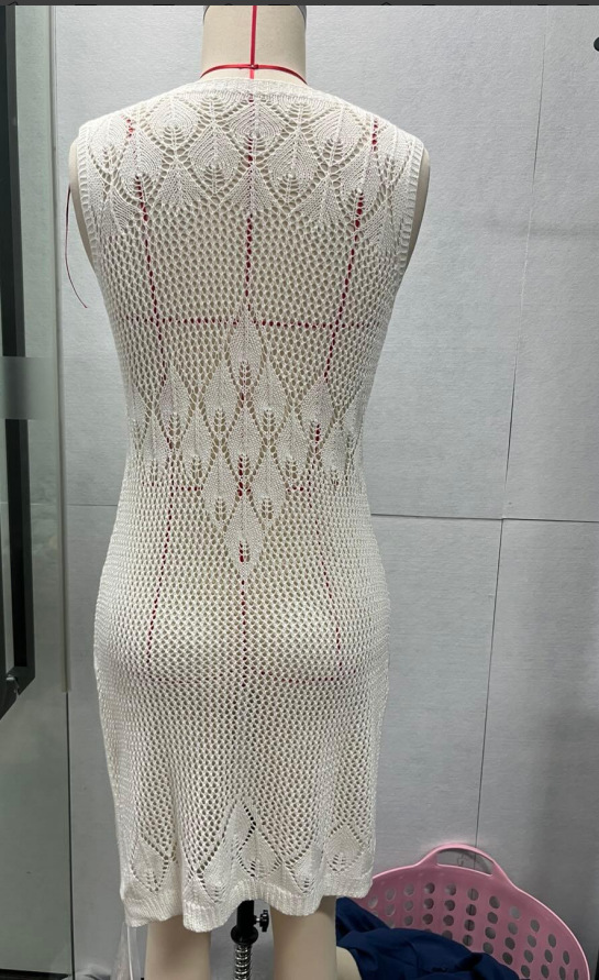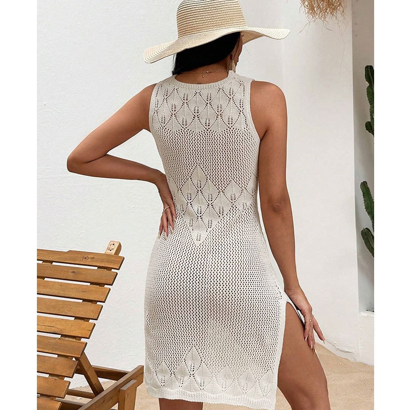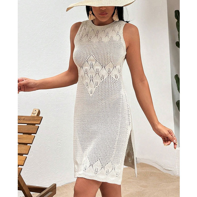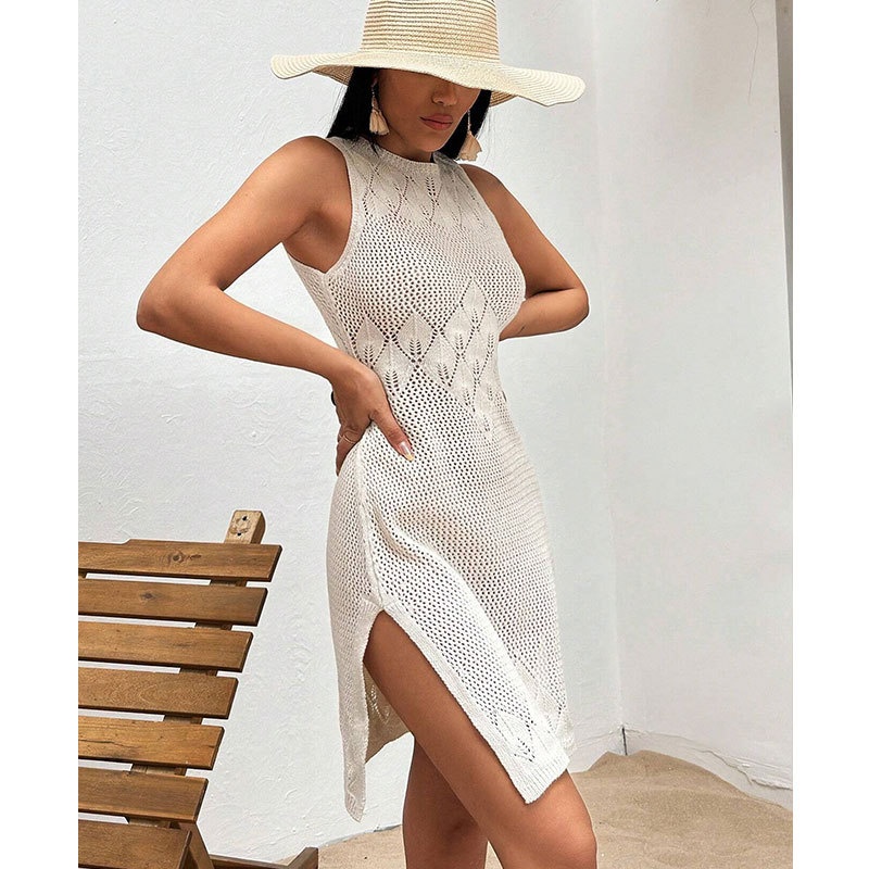 洋洋新款欧美跨境性感针织镂空沙滩罩衫长裙比基尼度假罩衫防晒服