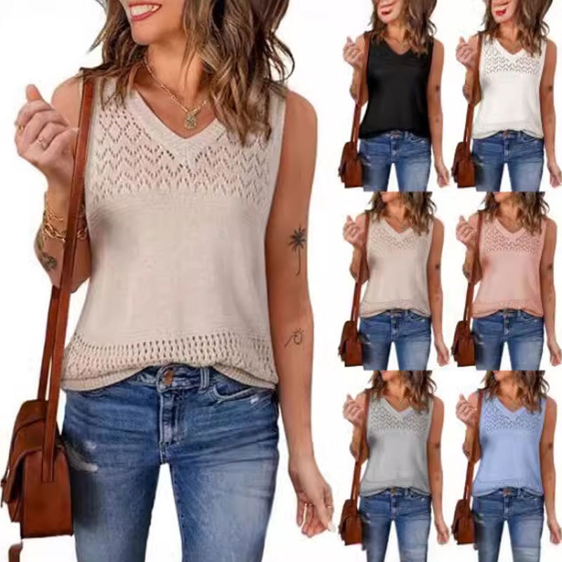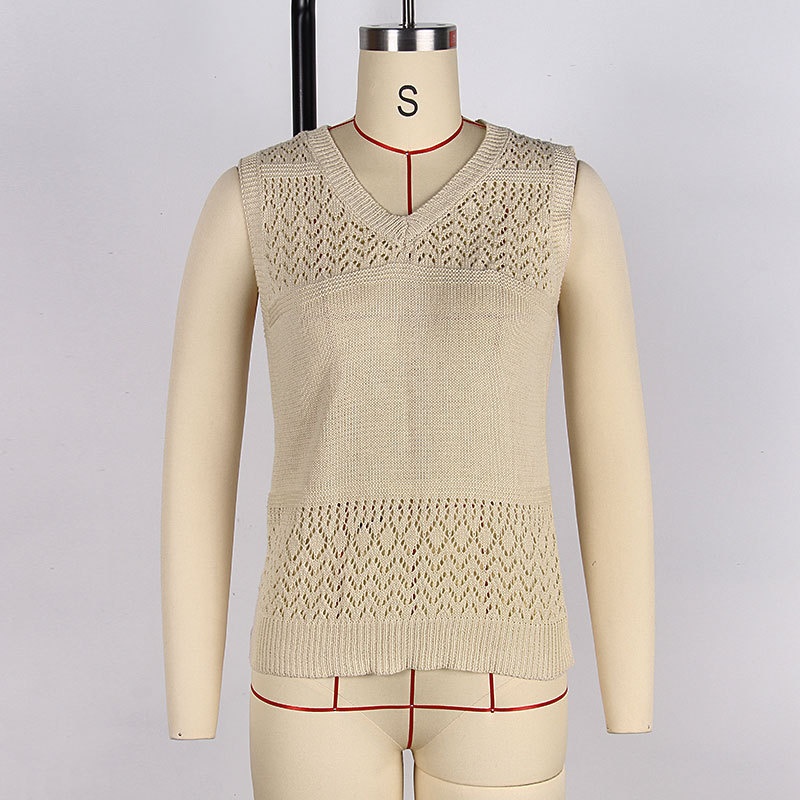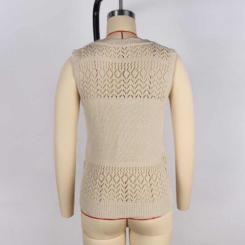洋洋新款欧美沙滩罩衫 跨境镂空针织v领无袖比基尼泳衣背心