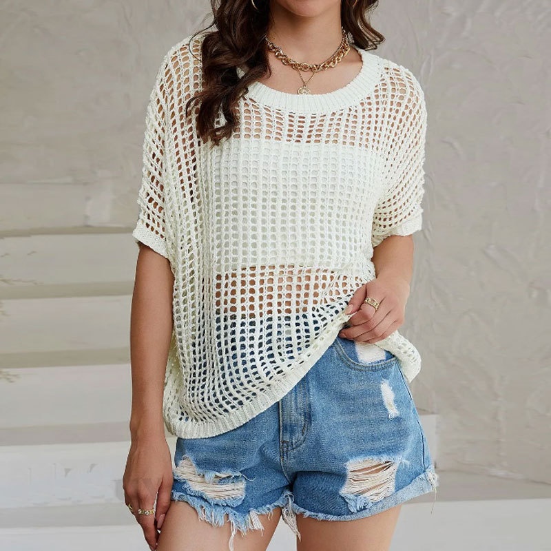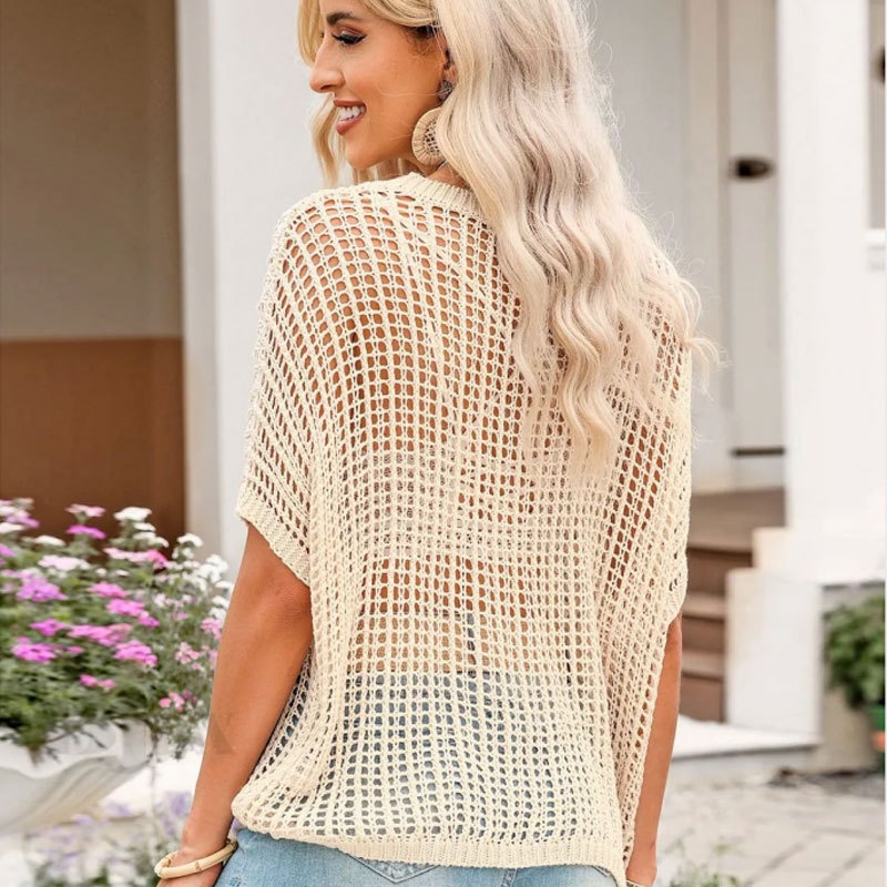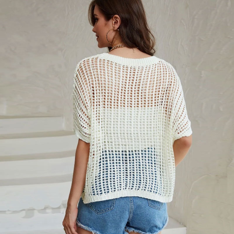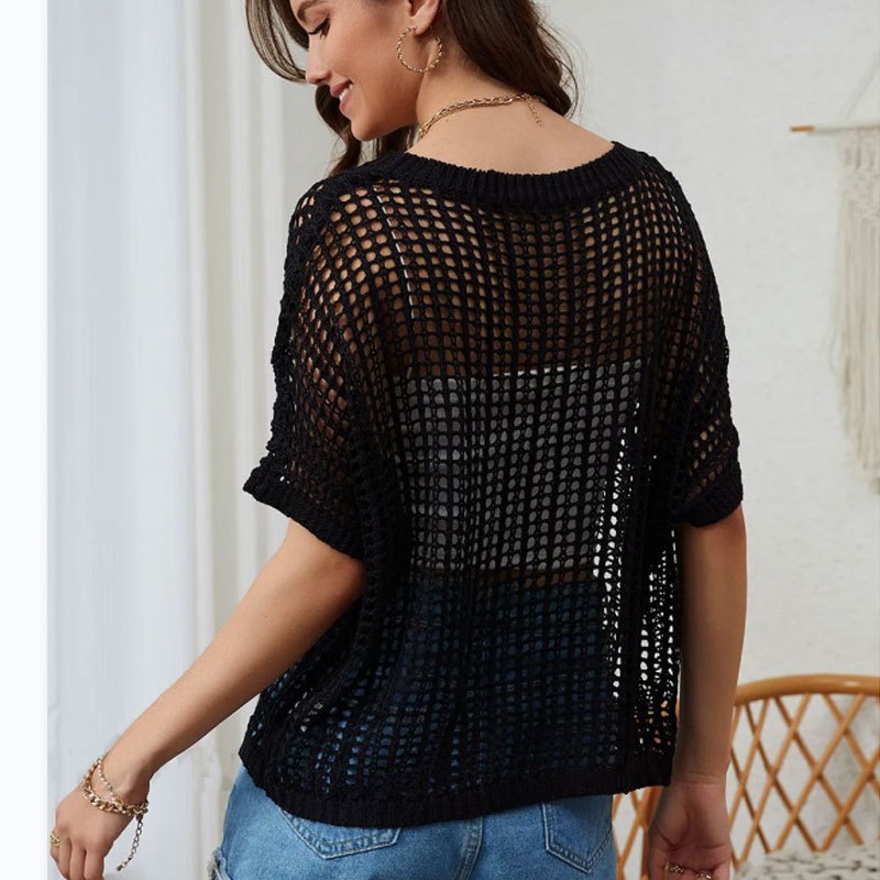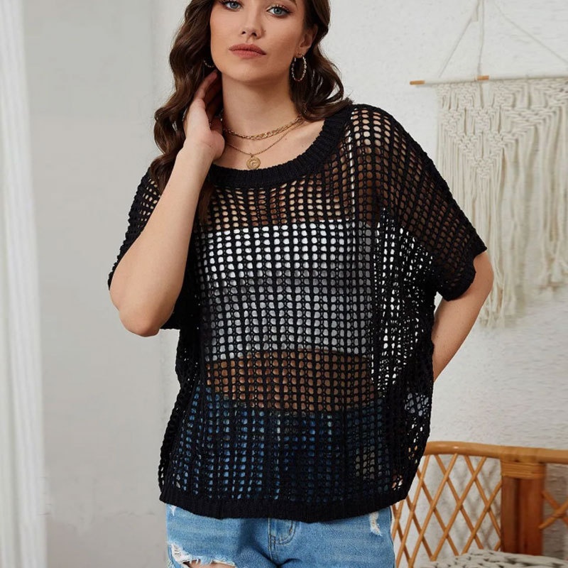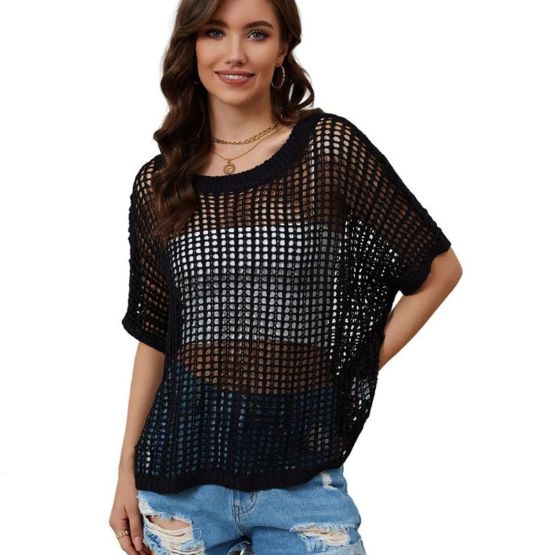 跨境镂空针织沙滩罩衫欧美比基尼网眼泳衣罩衫度假防晒衫女