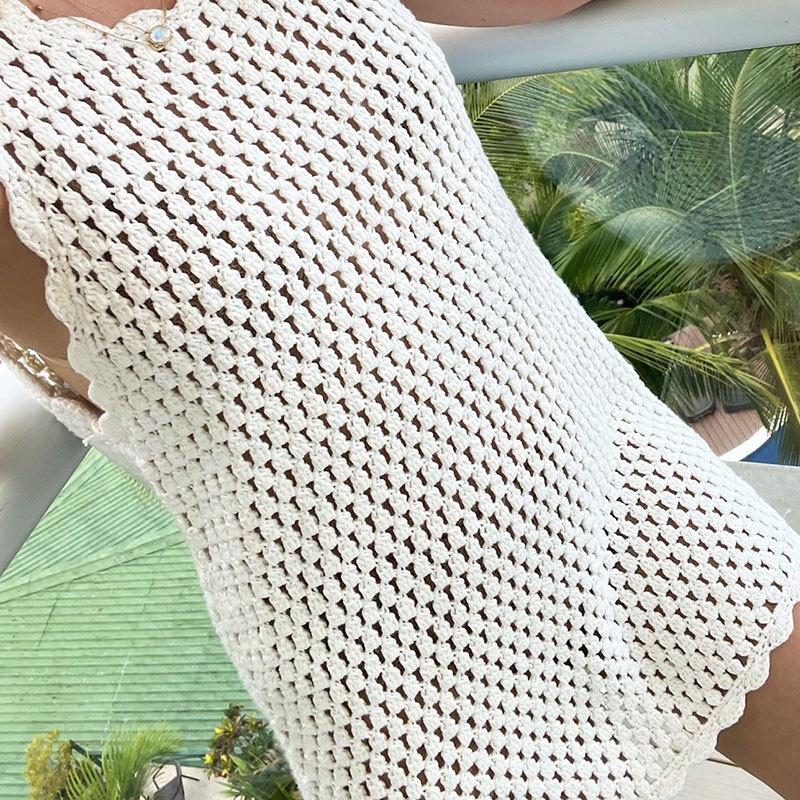 欧美沙滩裙跨境纯色性感露背针织背心镂空针织裙厂家直销