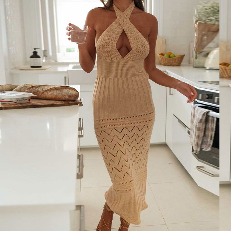 欧美跨境新款挂脖性感比基尼罩衫露背沙滩防晒服泳衣罩衫女