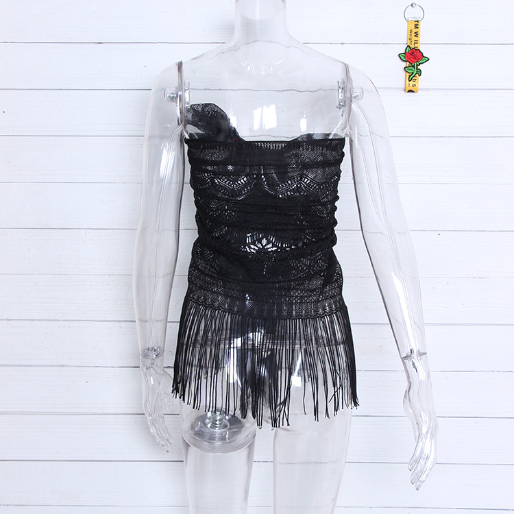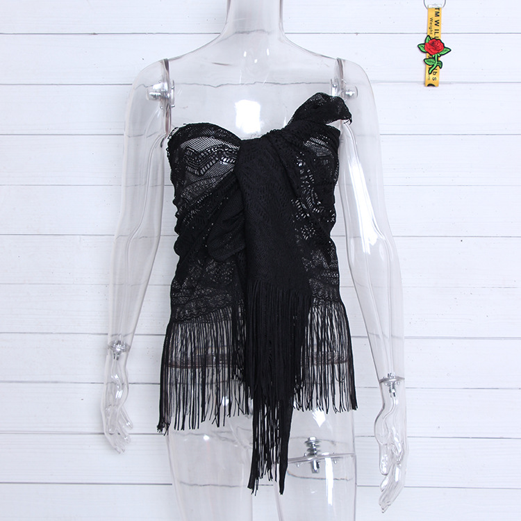 欧美腰果花复古吊带背心针织黑色抹胸美背外穿不规则辣妹上衣女夏