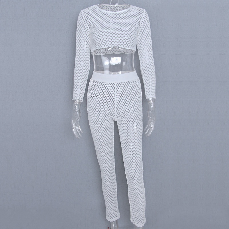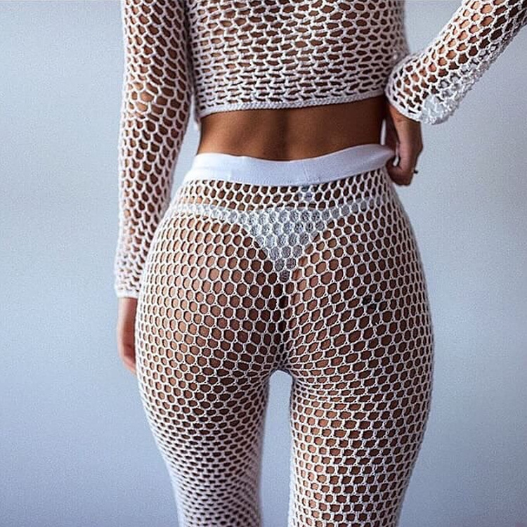 夏季新款 欧美比基尼防晒衣渔网两件套性感镂空沙滩罩衫