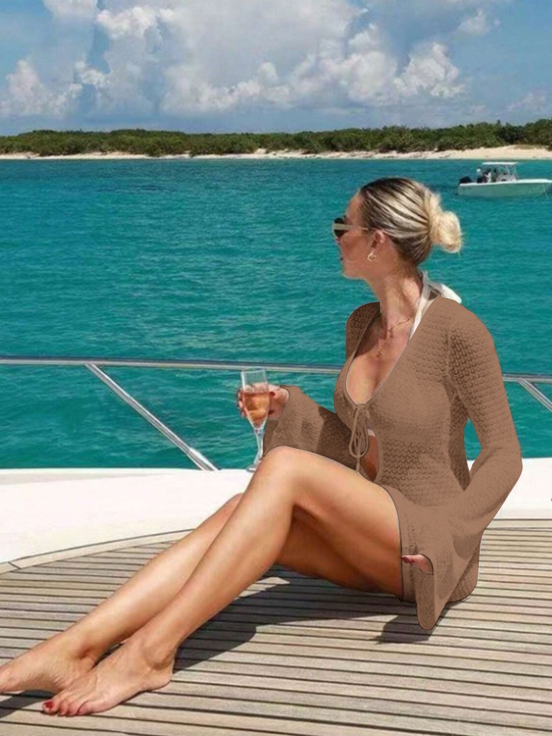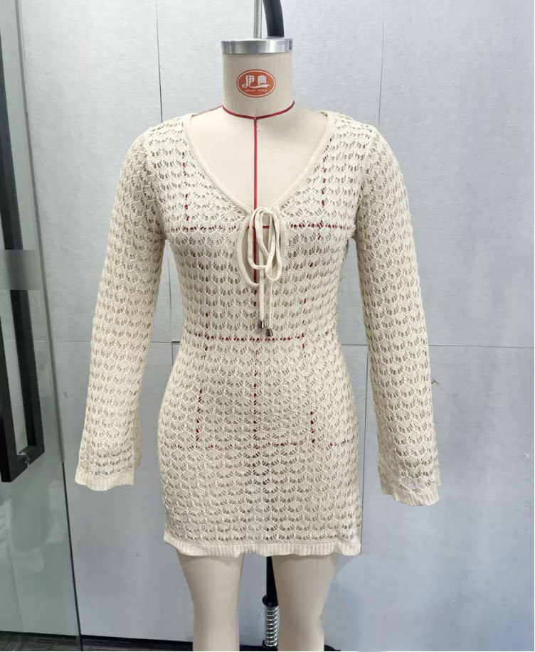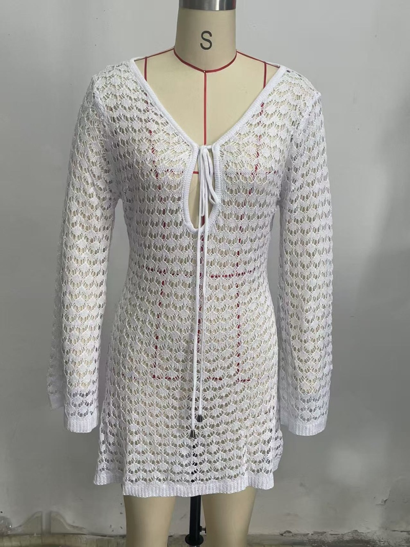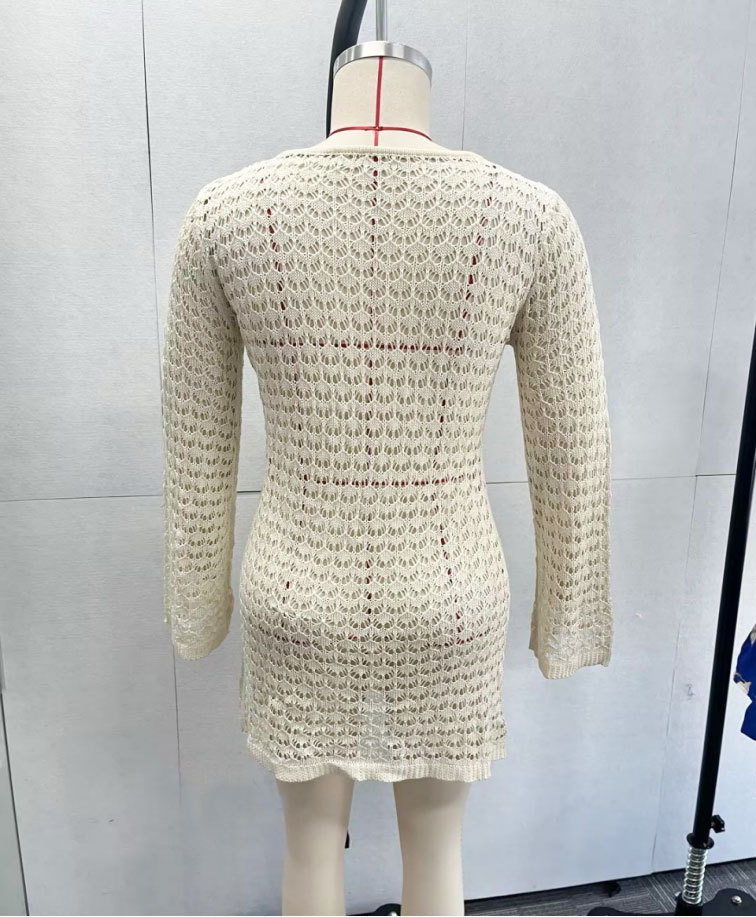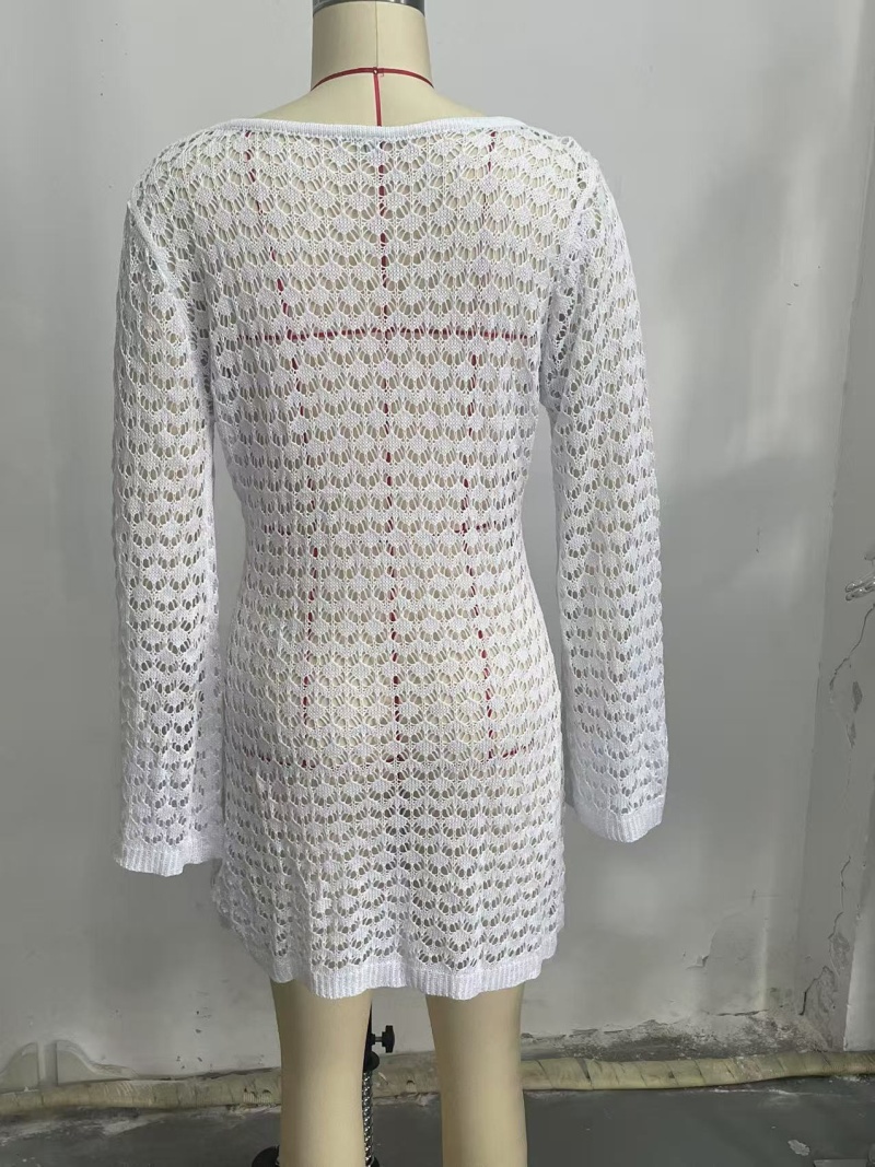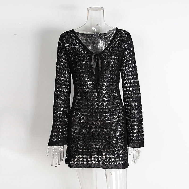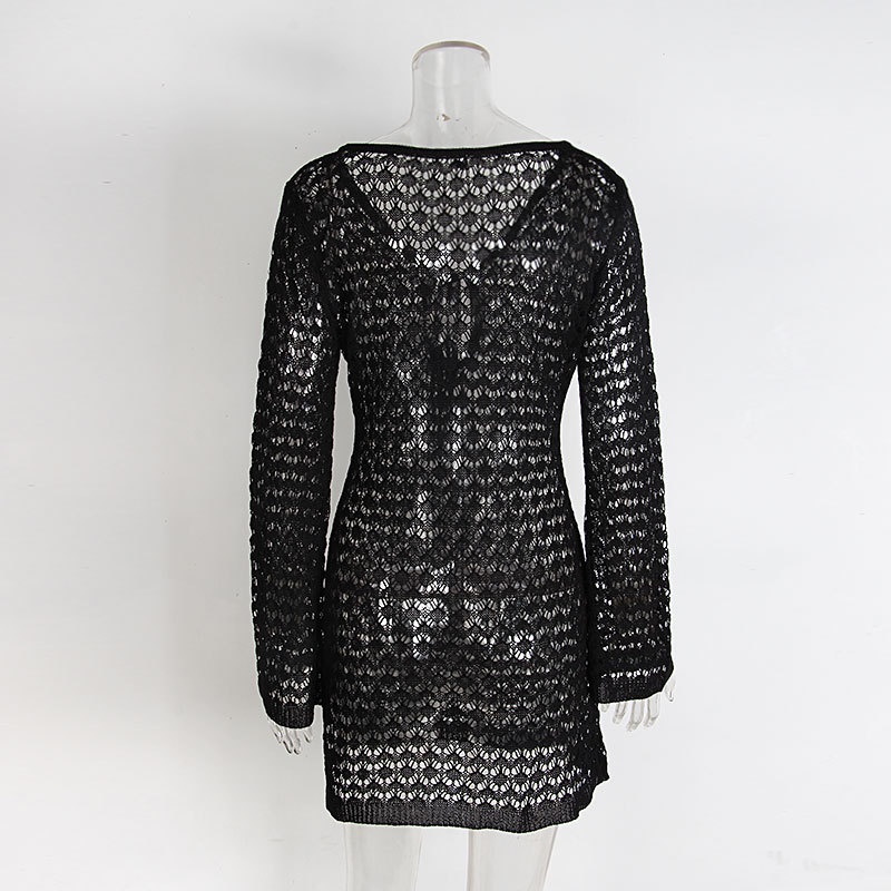 洋洋新款跨境欧美沙滩裙性感镂空透视针织比基尼泳衣罩衫防晒服女