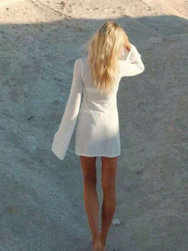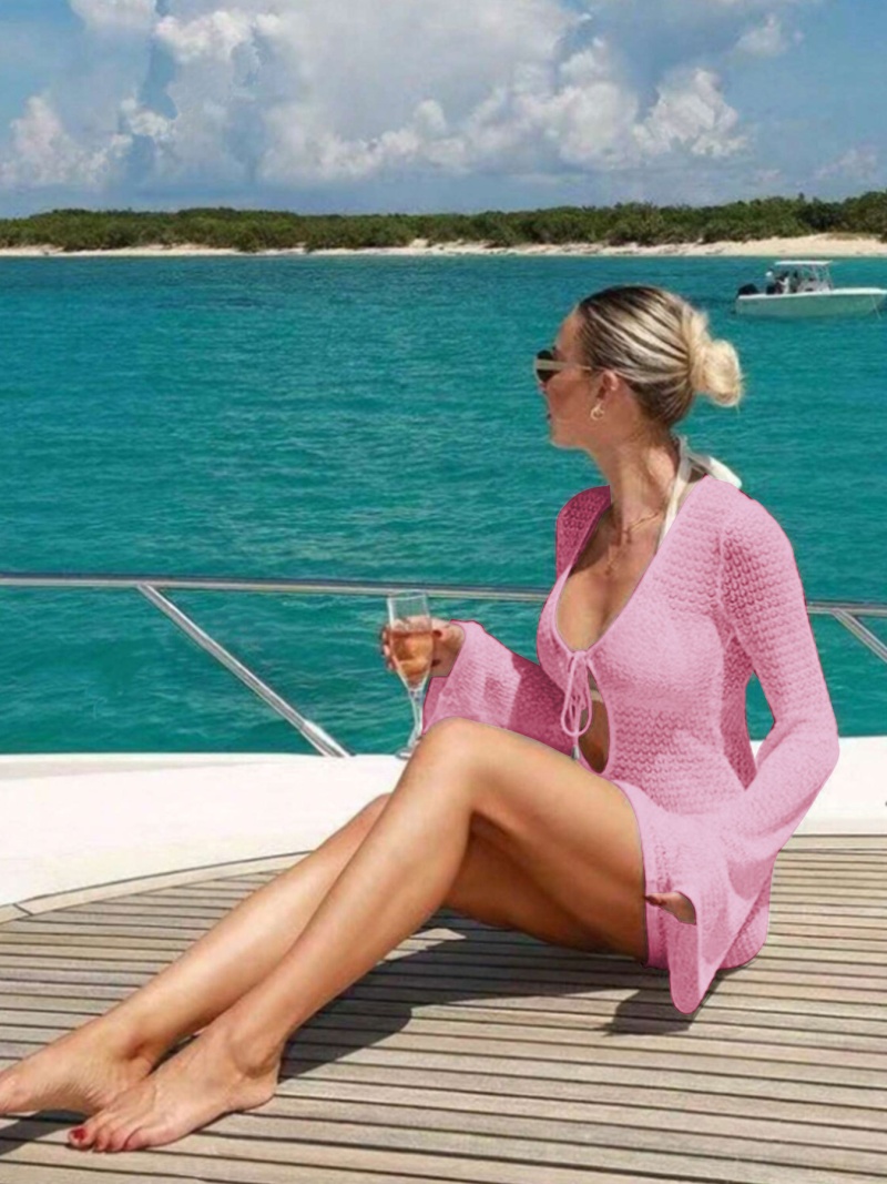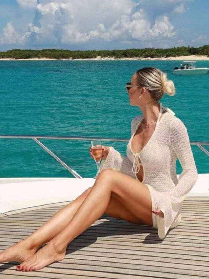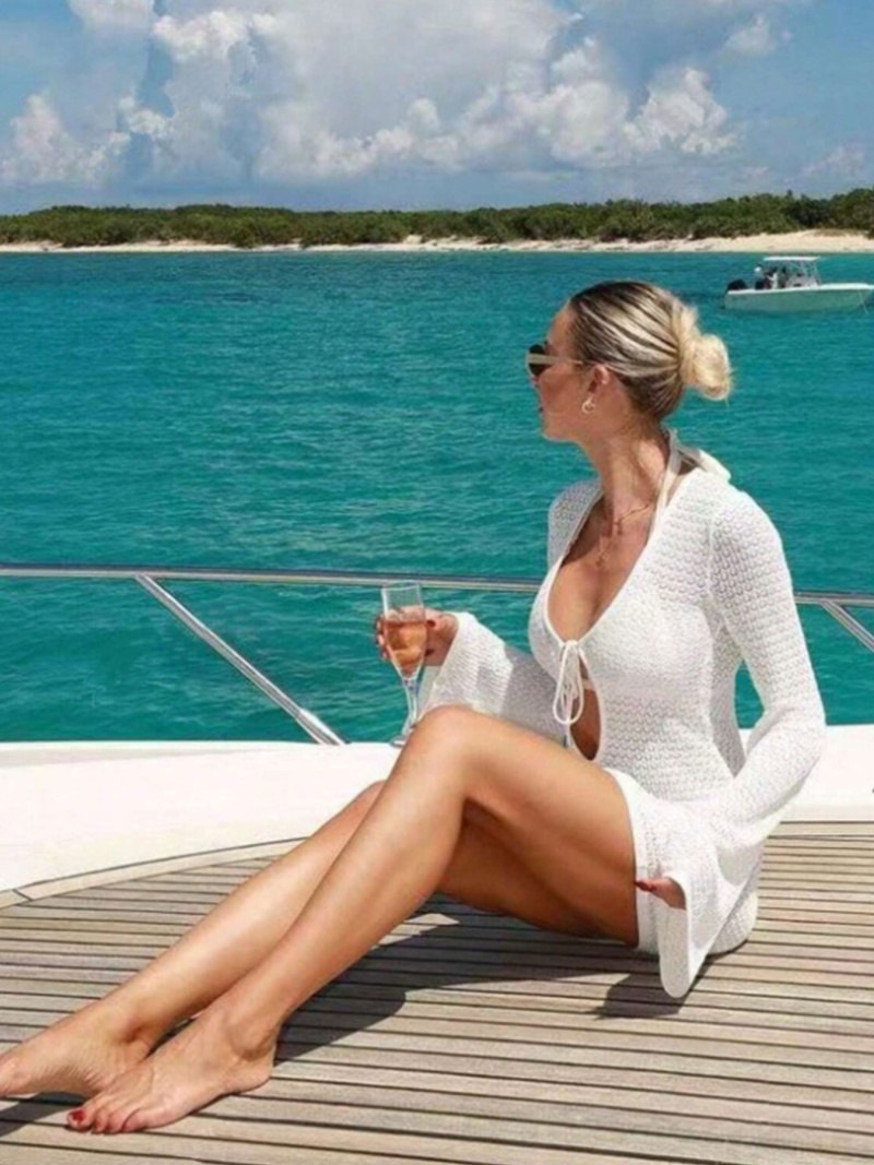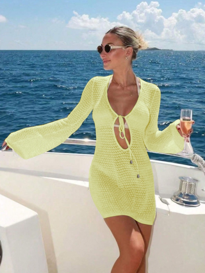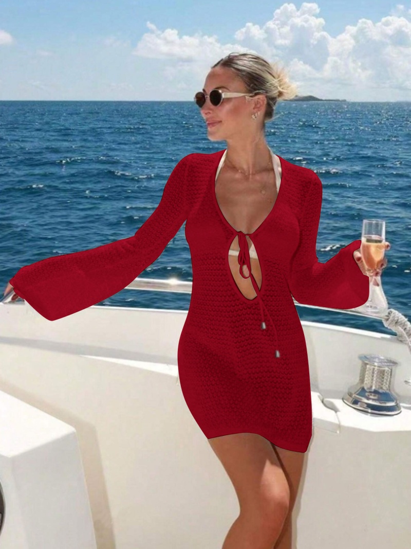 洋洋新款跨境欧美沙滩裙性感镂空透视针织比基尼泳衣罩衫防晒服女