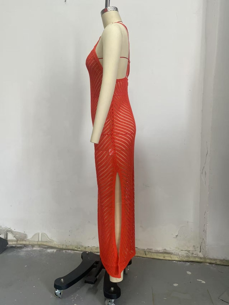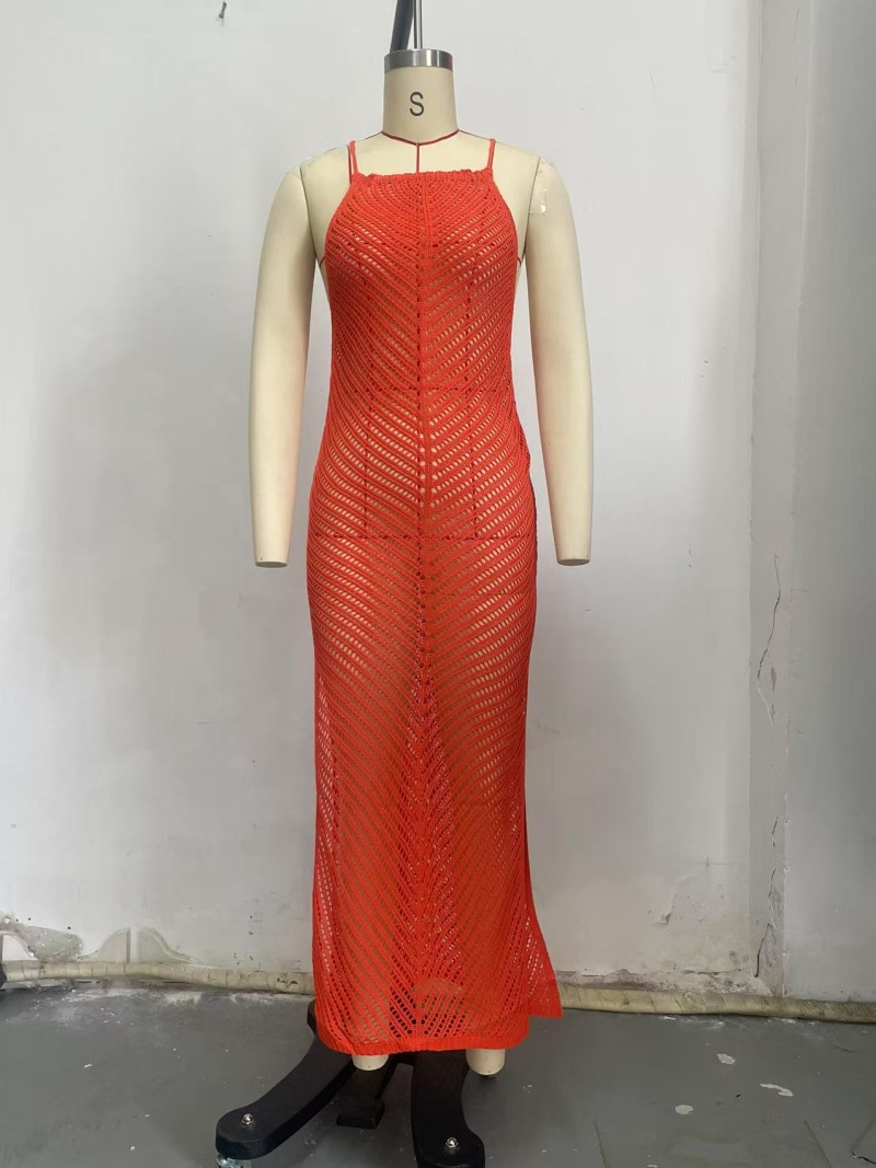 欧美新款沙滩裙跨境针织镂空性感吊带长款沙滩泳衣防晒罩衫
