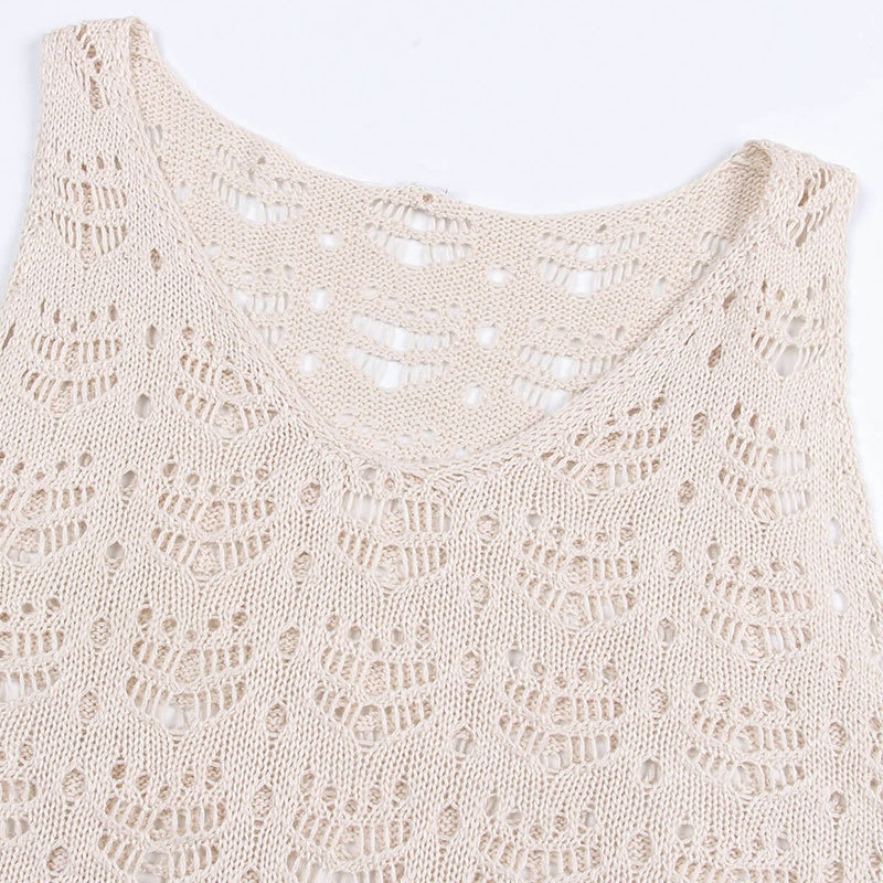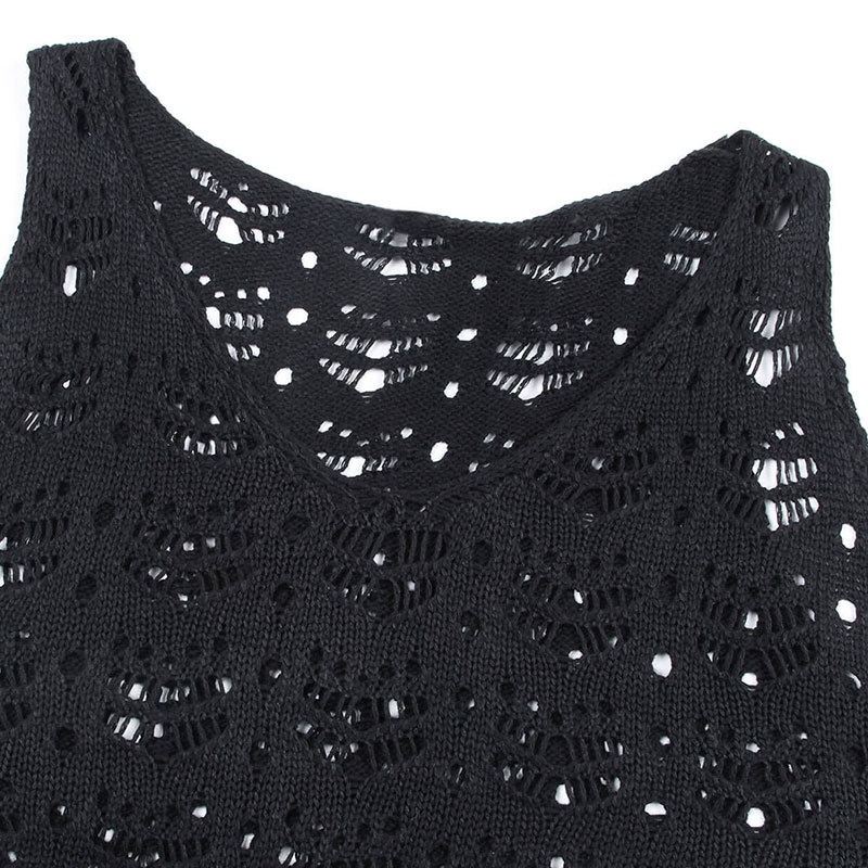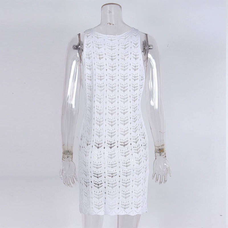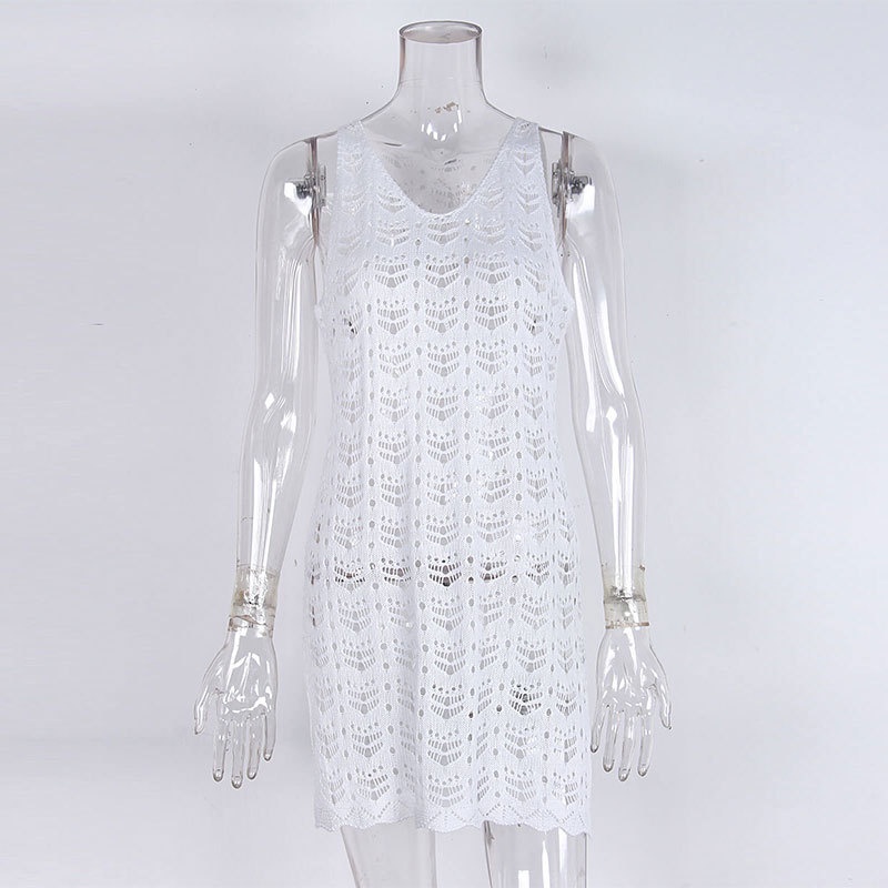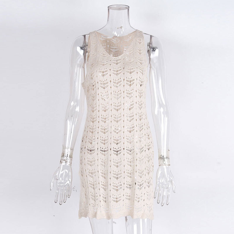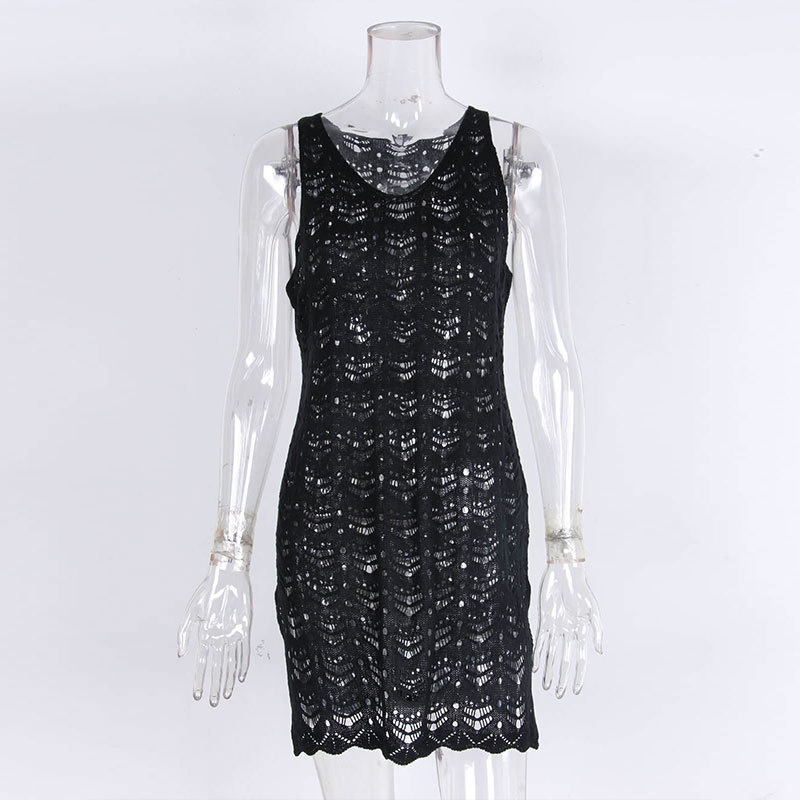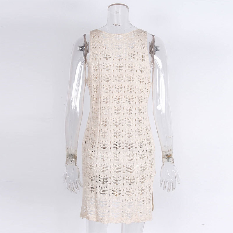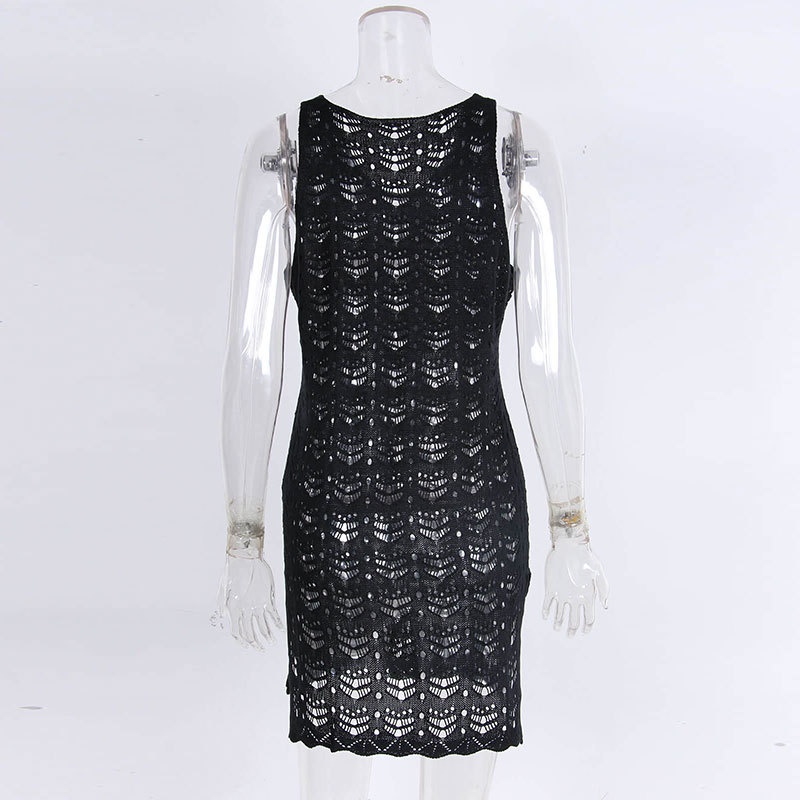跨境欧美新款镂空沙滩防晒衫性感透视露背无袖连衣裙女比基尼罩衫