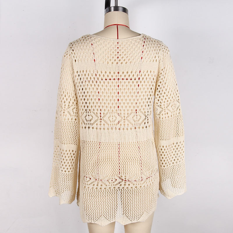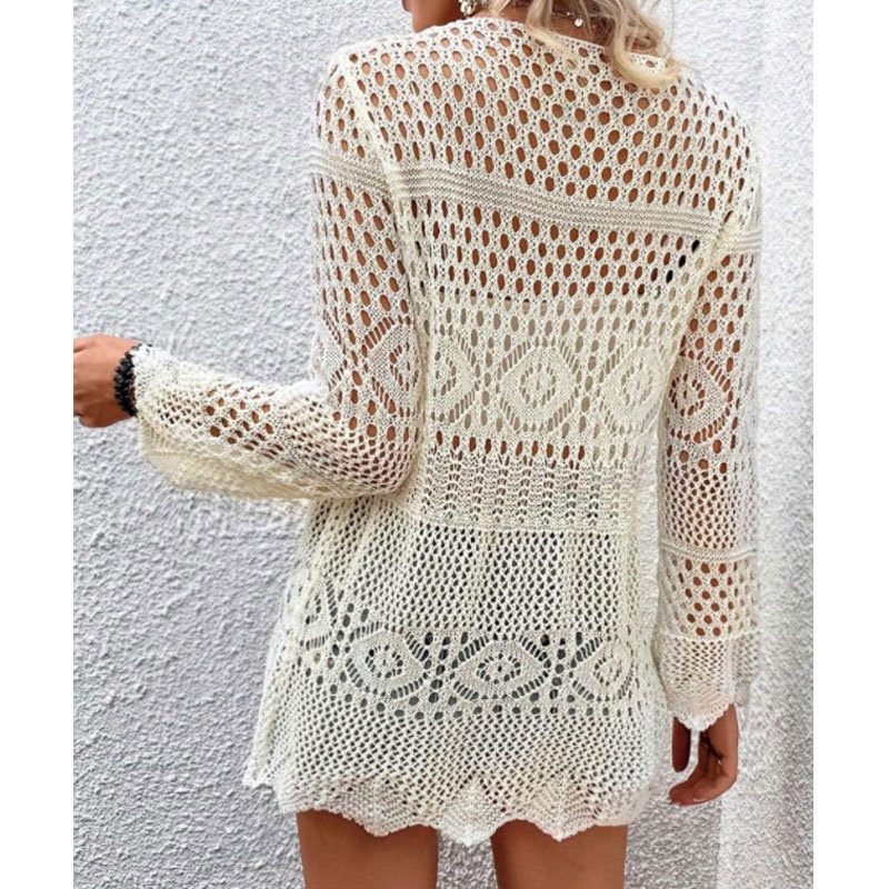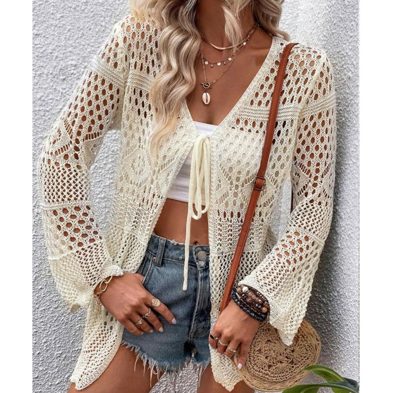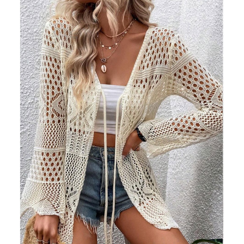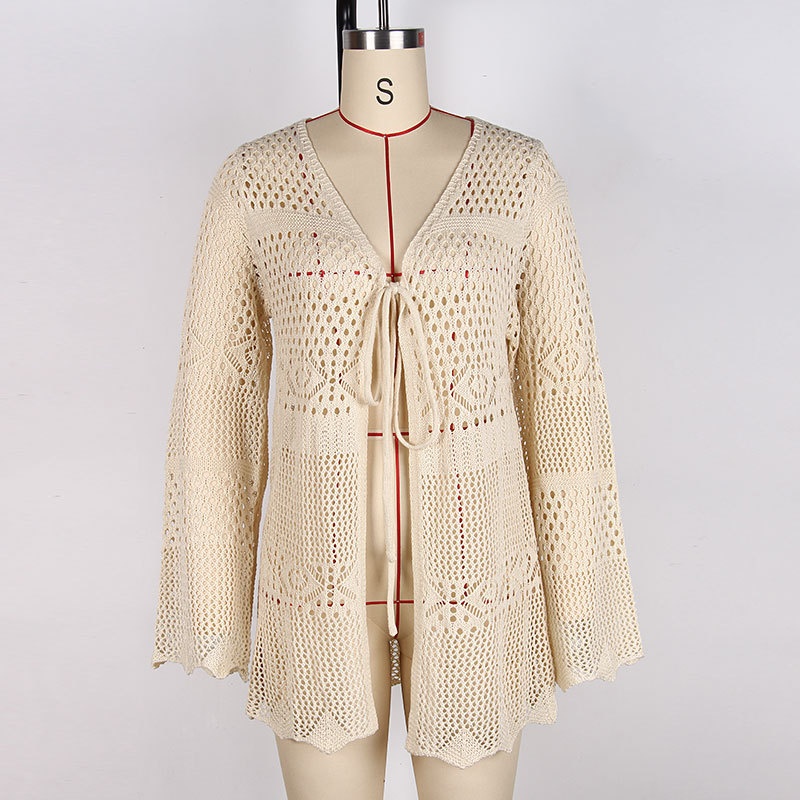 洋洋欧美跨境性感针织镂空绑带开衫比基尼沙滩罩衫外套女装
