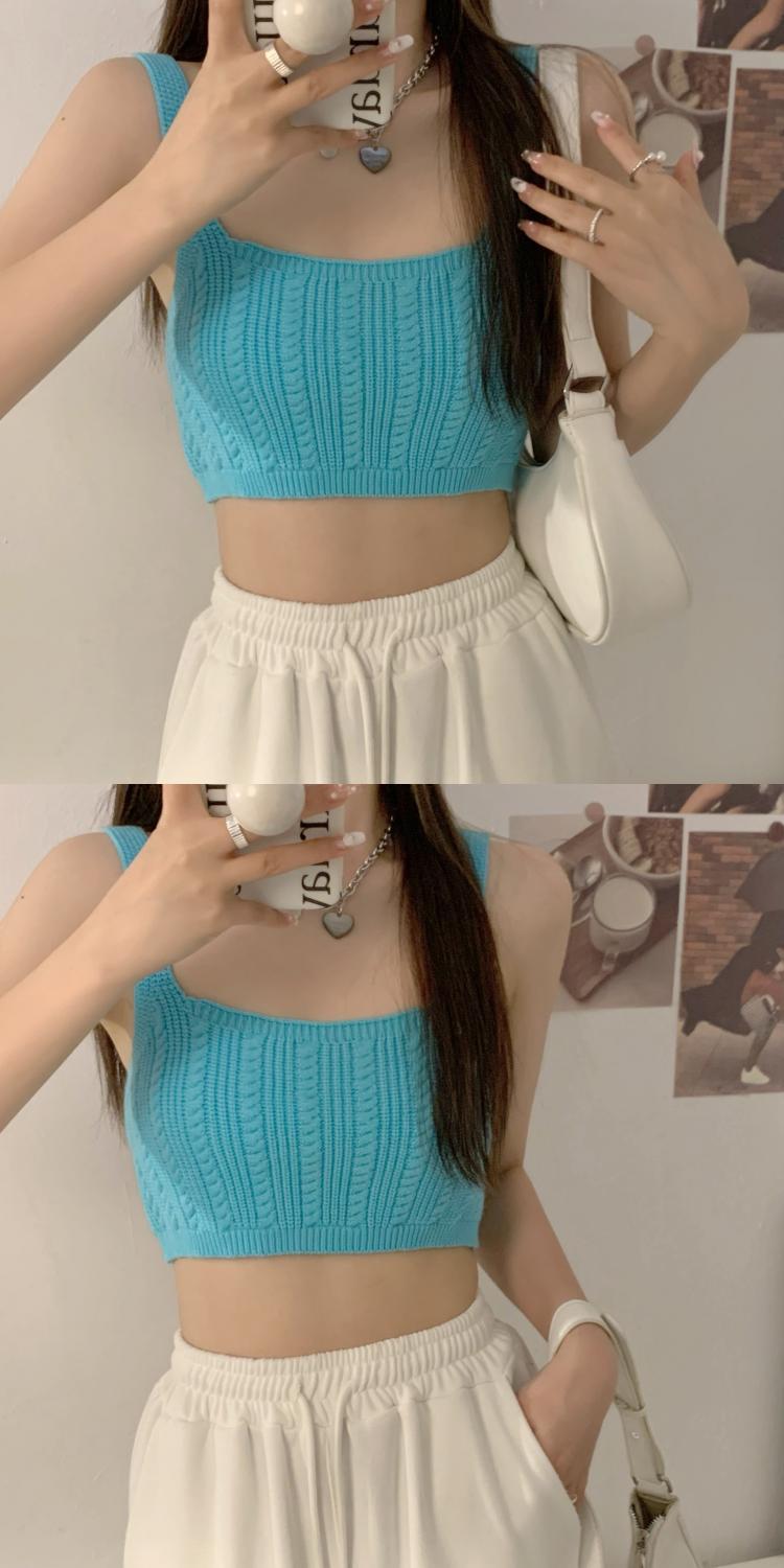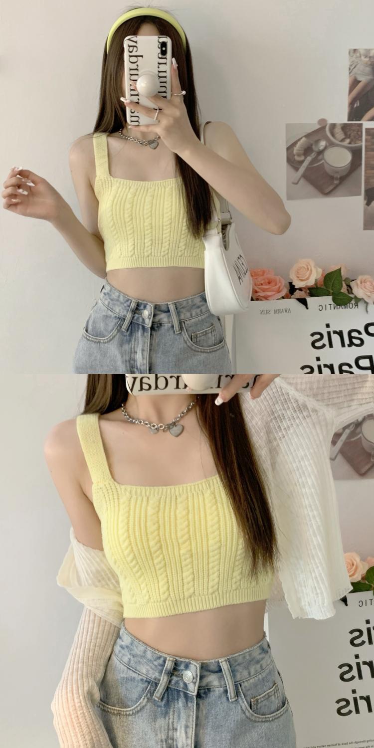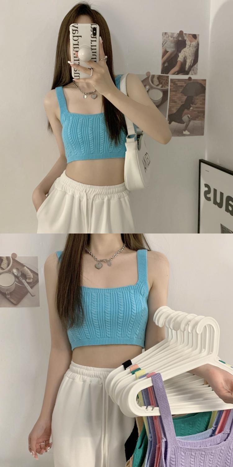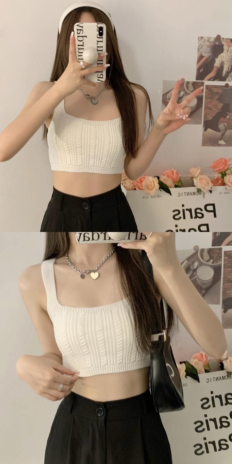 夏季短款纯色法式针织薄款挂脖吊带性感辣妹外穿露背加工定制上衣