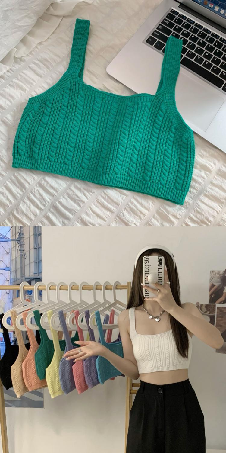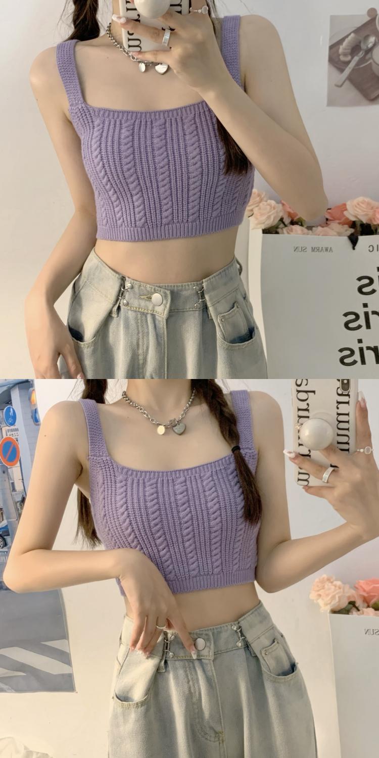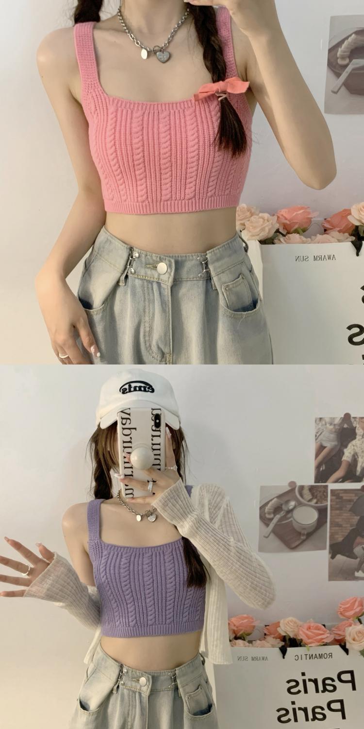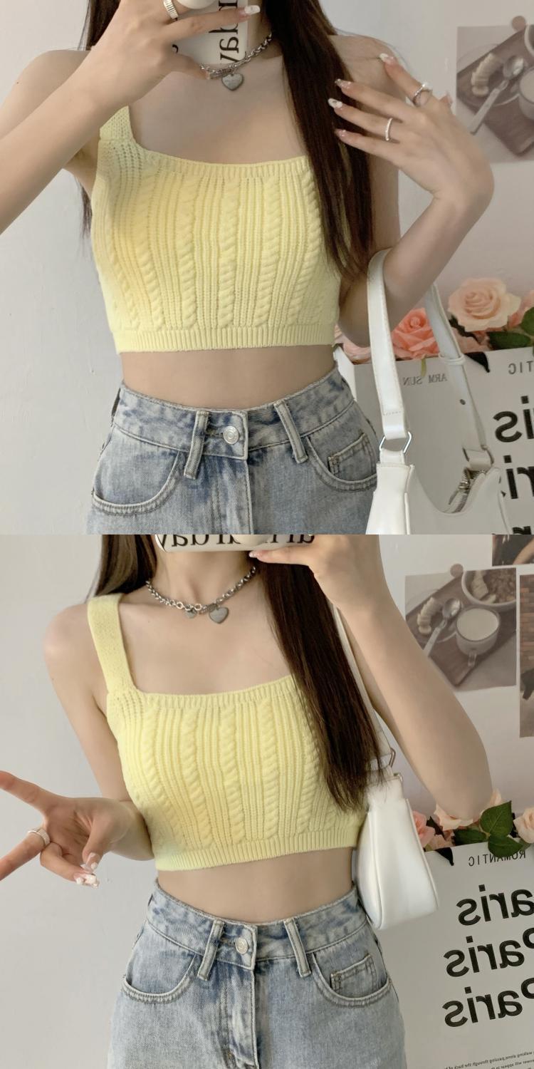 夏季短款纯色法式针织薄款挂脖吊带性感辣妹外穿露背加工定制上衣