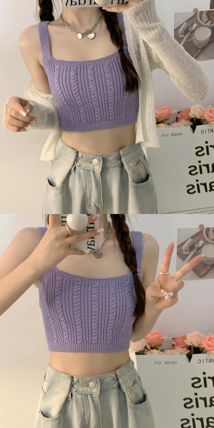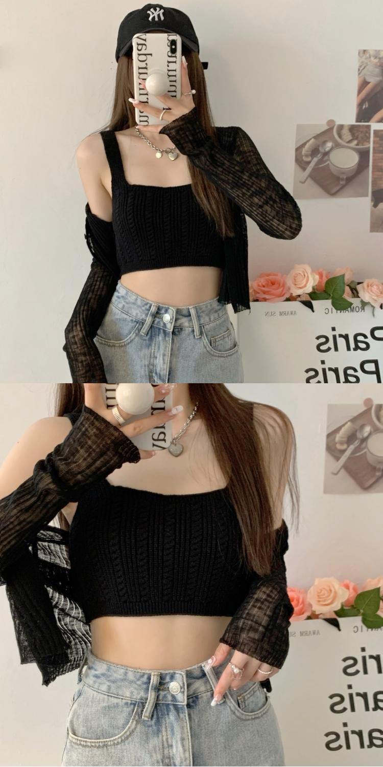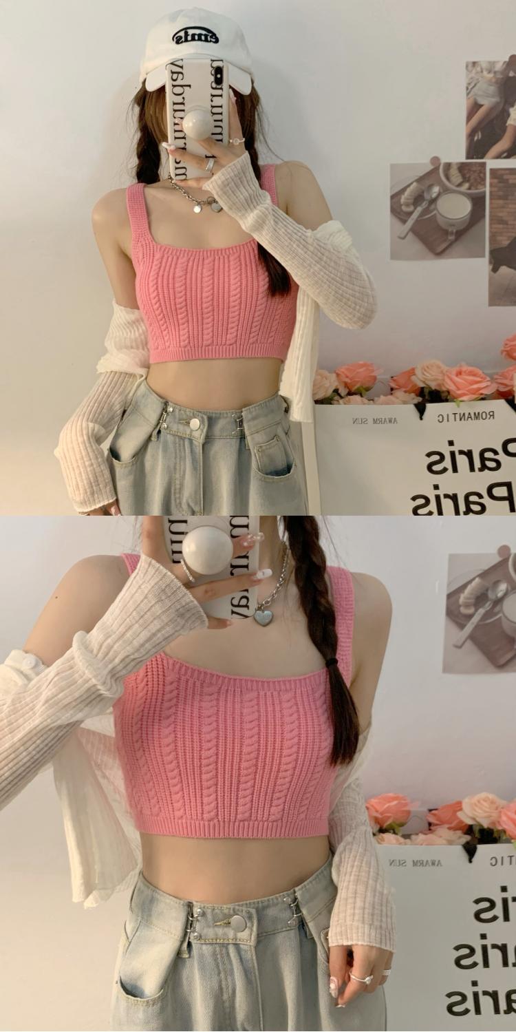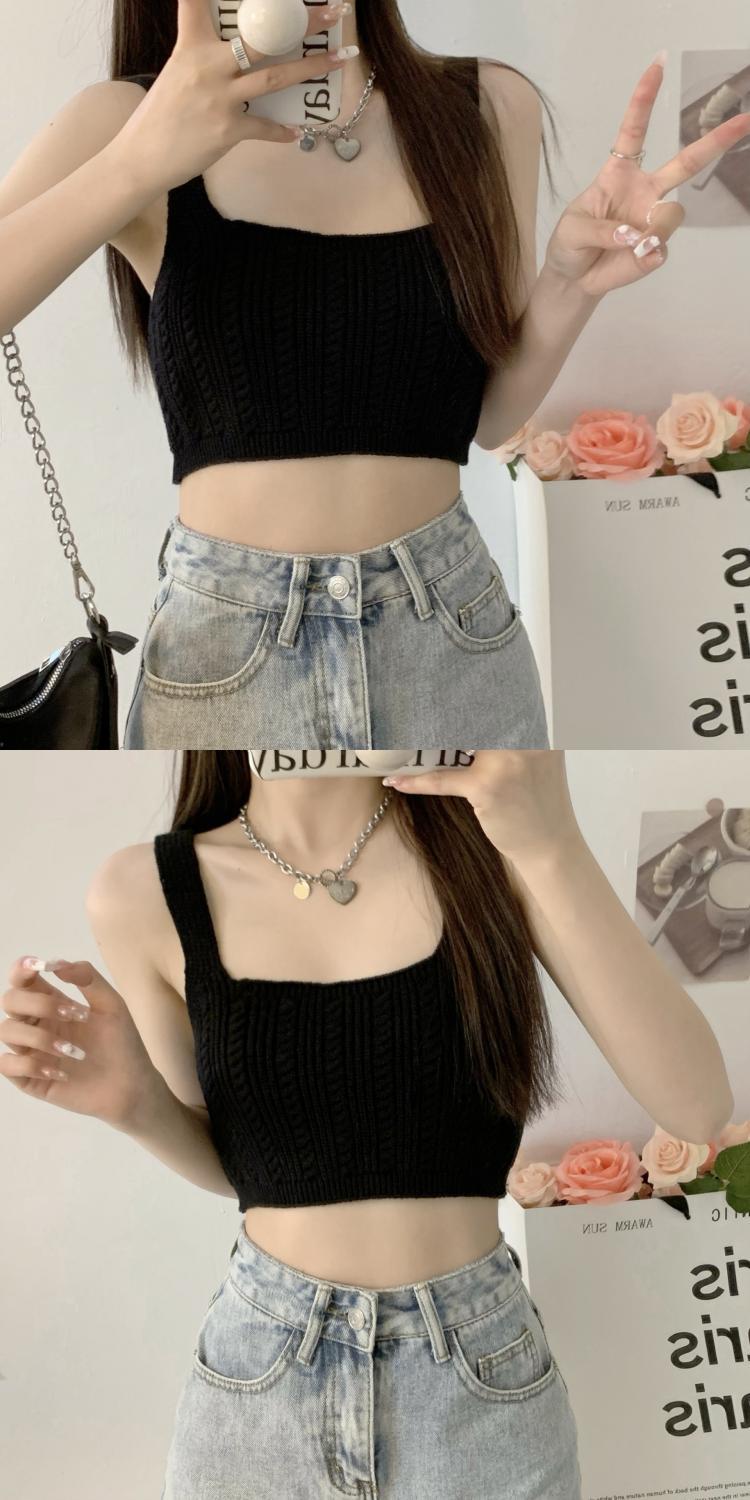 夏季新款针织吊带背心短款上衣镂空无袖设计感衫辣妹性感外穿内搭