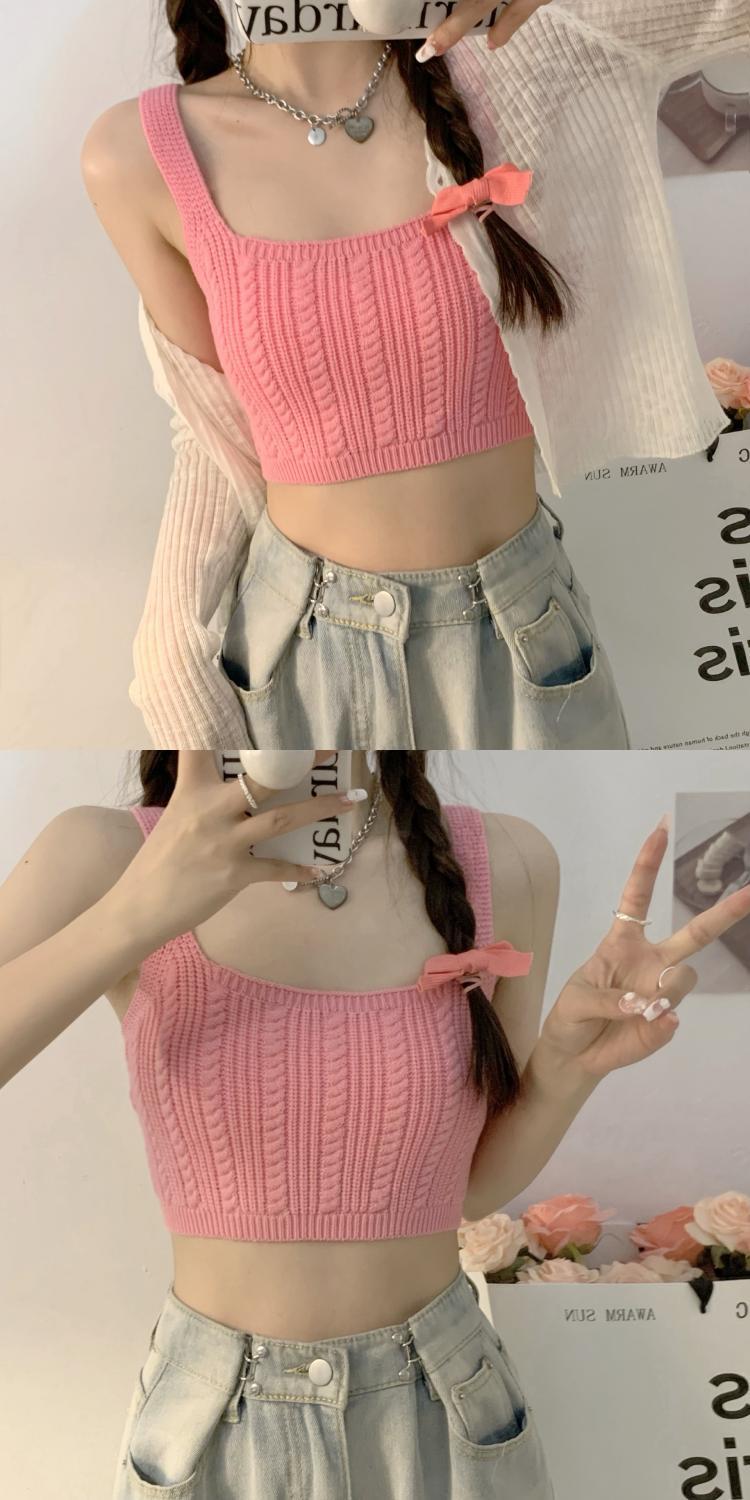 夏季新款设计感薄款蝴蝶结短款内搭外穿上衣辣妹针织bm吊带背心女