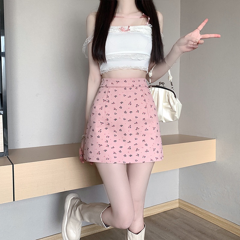 夏季碎花半身裙女2024新款高腰显瘦防走光小个子辣妹a字包臀短裙