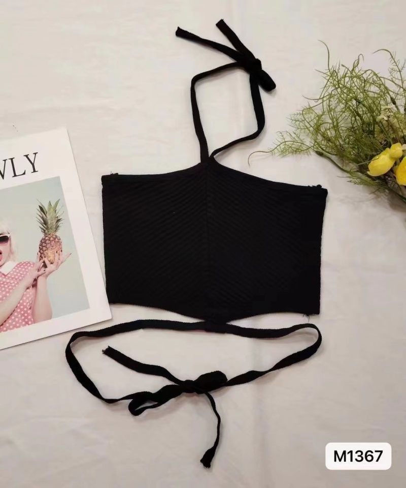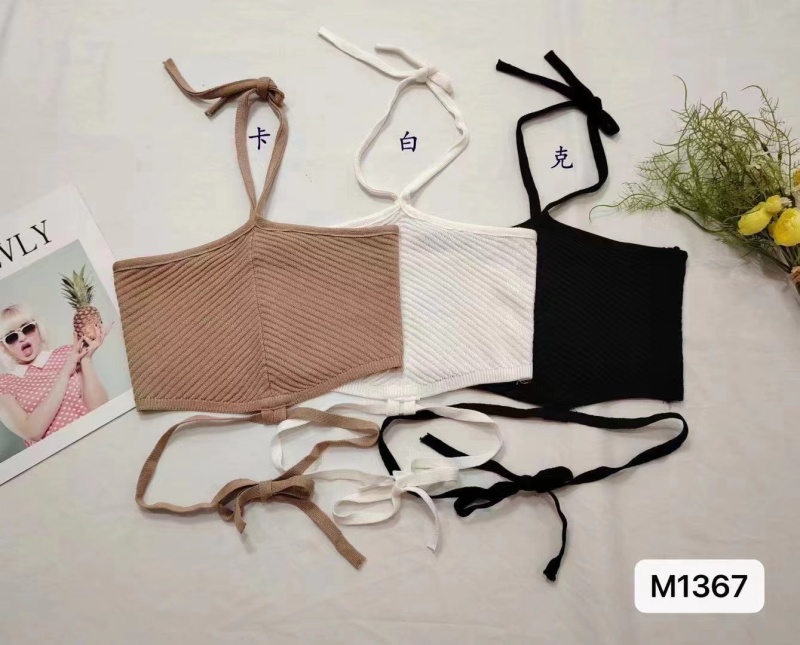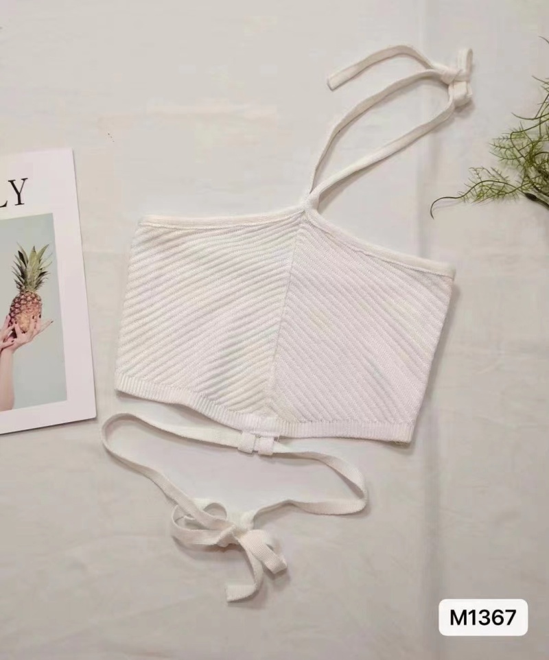 夏季短款纯色法式针织薄款挂脖吊带性感辣妹外穿露背加工定制上衣