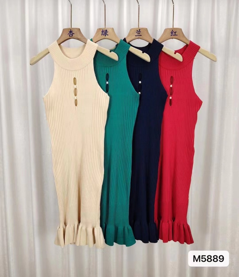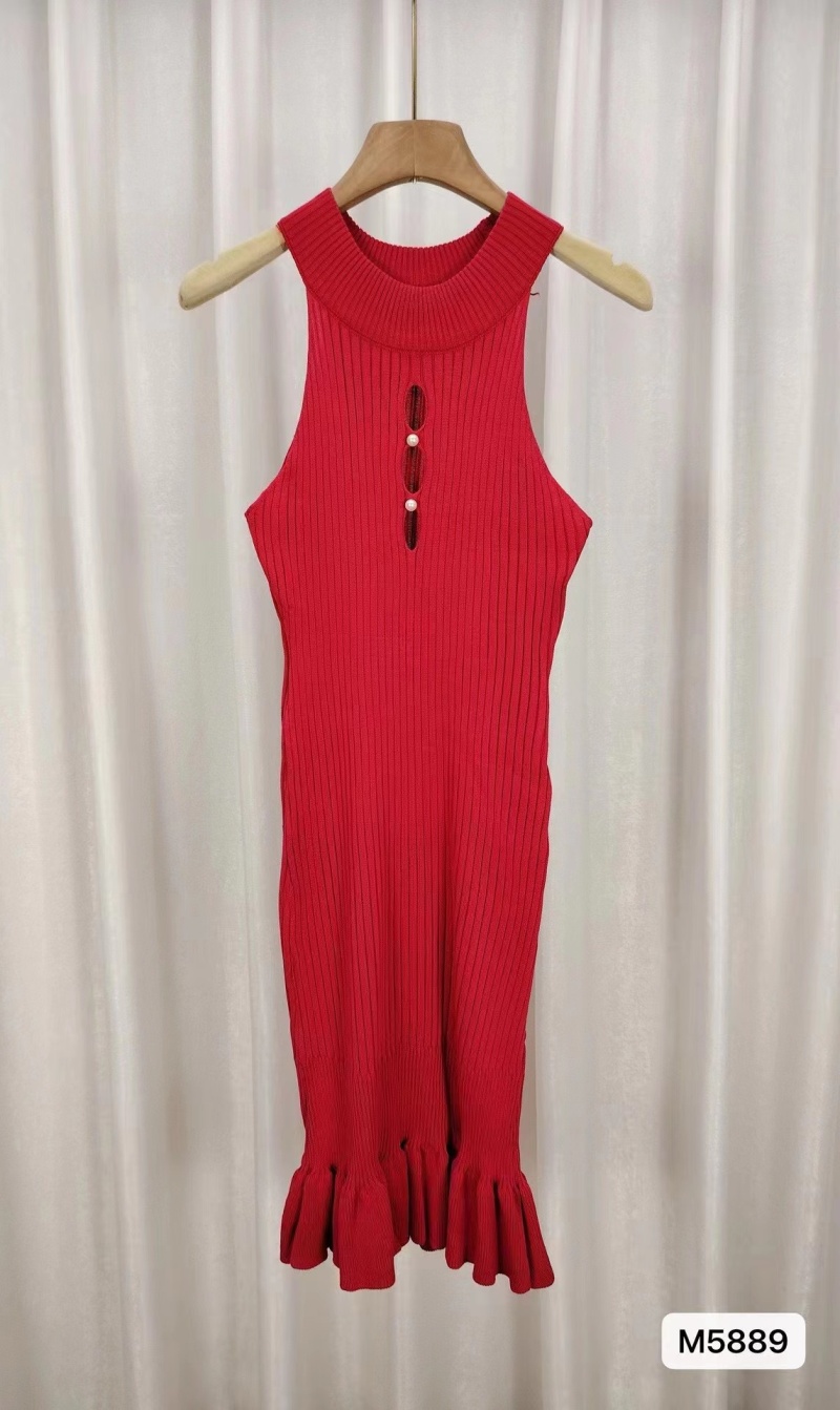 2024夏季女冰丝针织连衣裙背心裙无袖修身显瘦包臀性感长款吊带裙