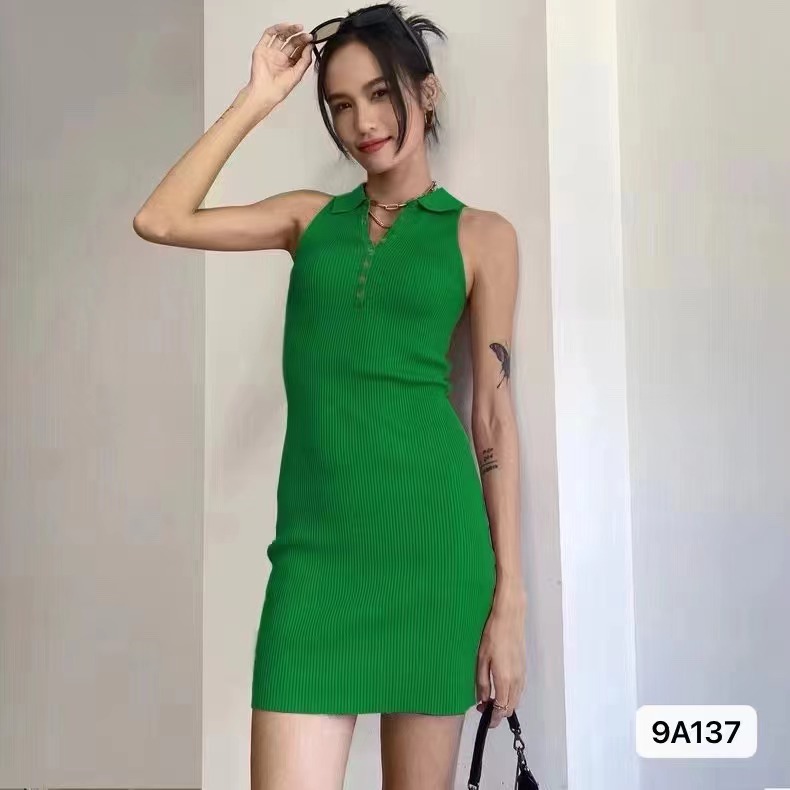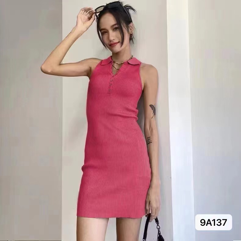 2024年夏季新款性感辣妹甜美清新欧美风Polo领半开胸包臀连衣裙女
