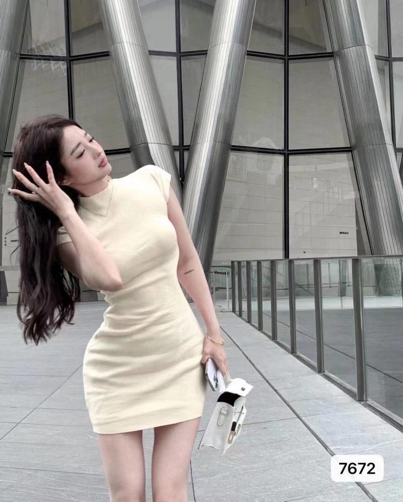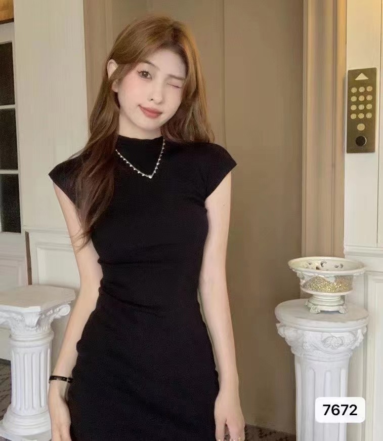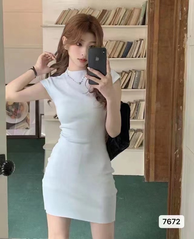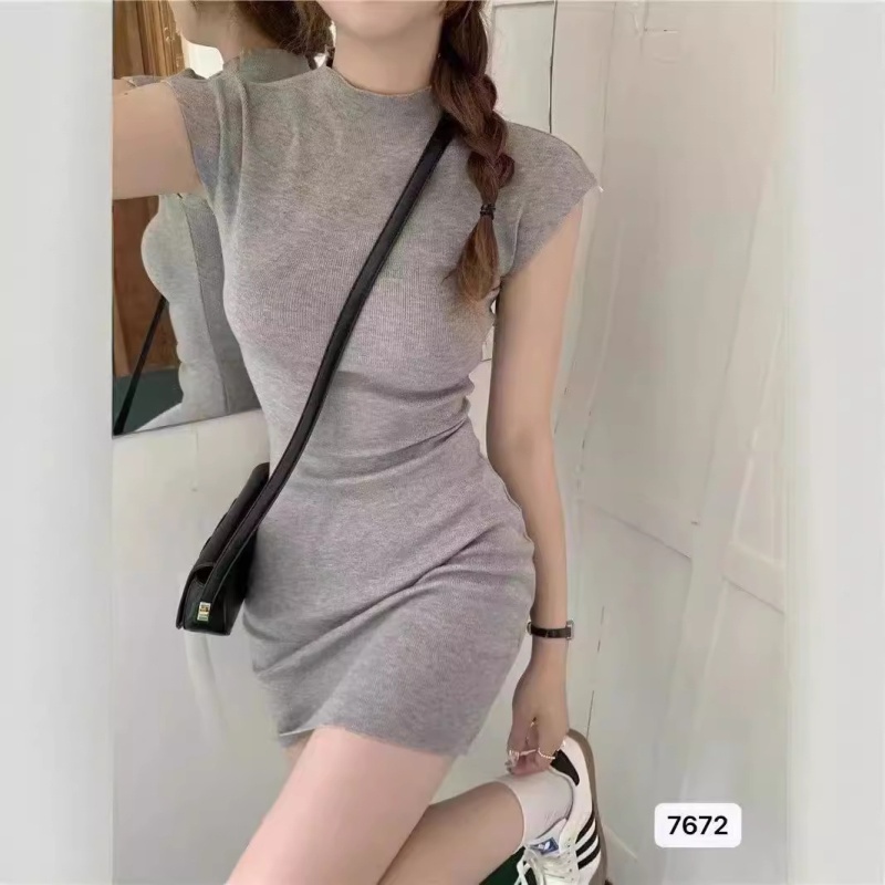 2023夏季新款欲纯氛围感紧身显瘦性感包臀裙短袖针织打底连衣裙女