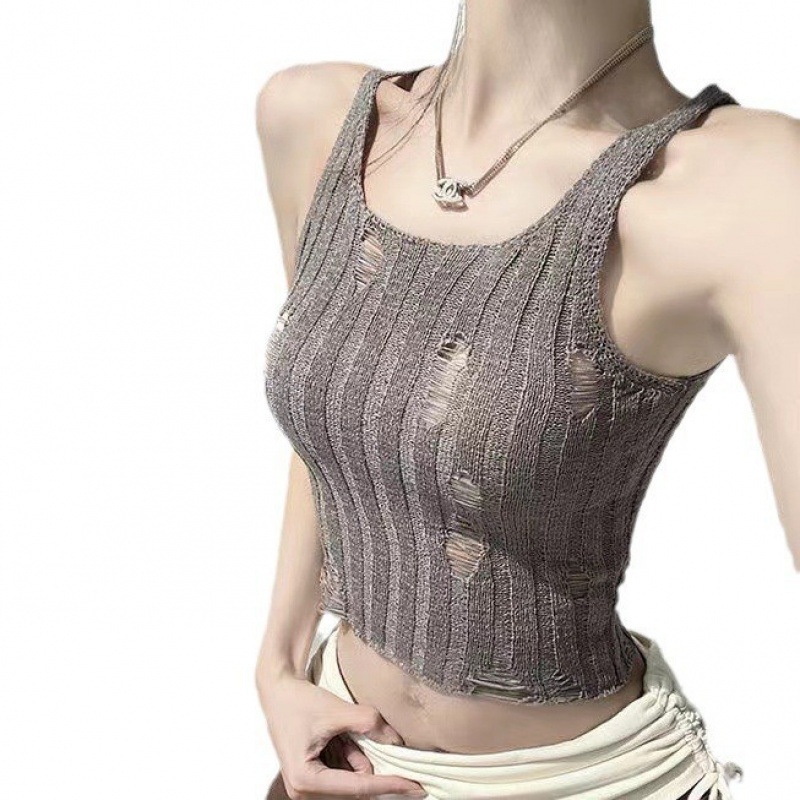 夏季新款针织吊带背心短款上衣镂空无袖设计感衫辣妹性感外穿内搭