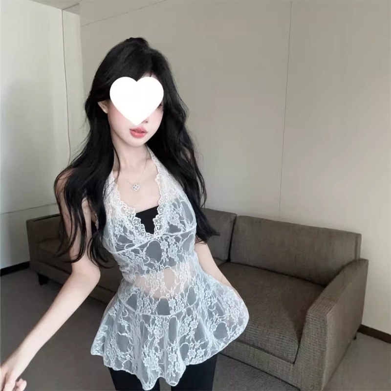 夏季短款纯色法式针织薄款挂脖吊带性感辣妹外穿露背加工定制上衣