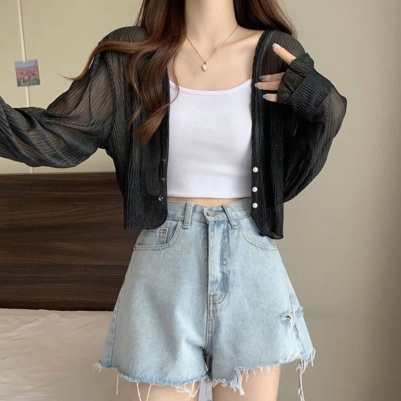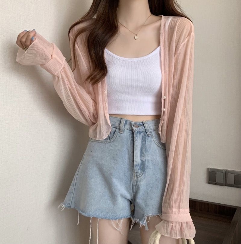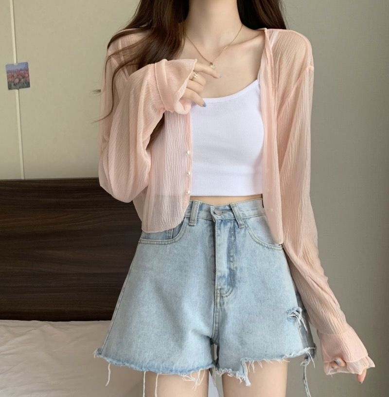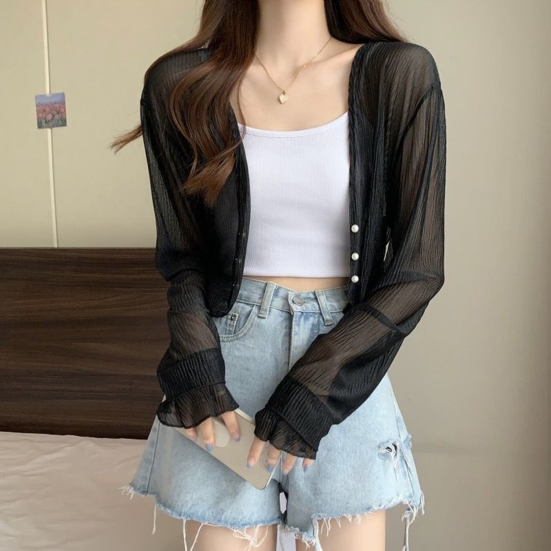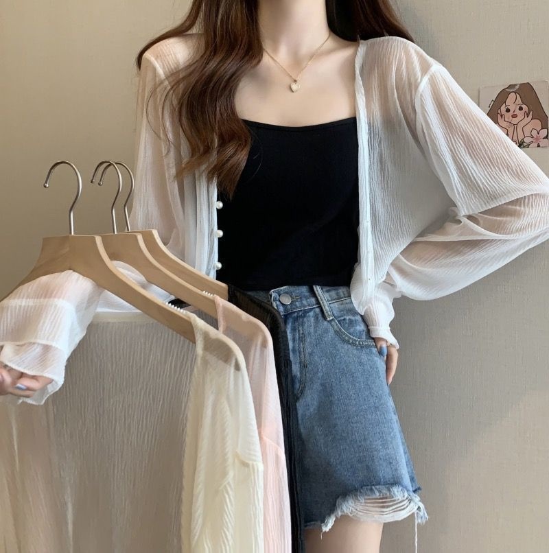 冰丝雪纺防晒衣外套女夏薄款长袖衬衫外搭配吊带裙子小披肩空调衫