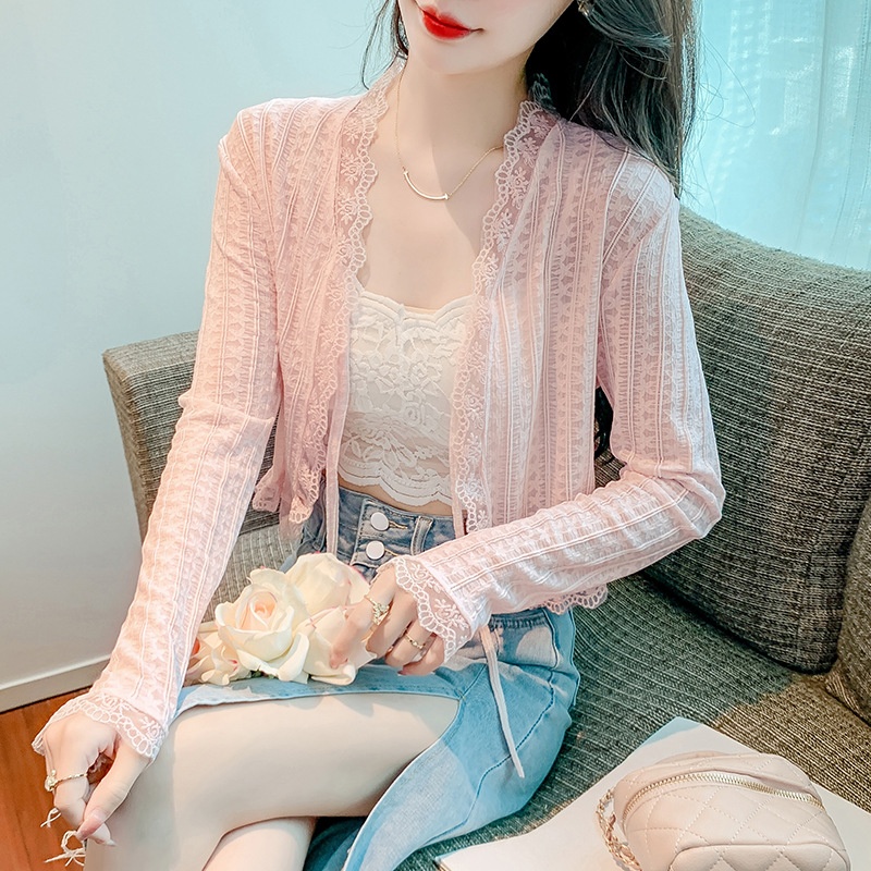 2024夏季新款薄款短款防晒蕾丝开衫显瘦甜美清新外套防晒衫上衣女