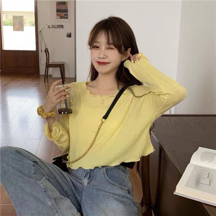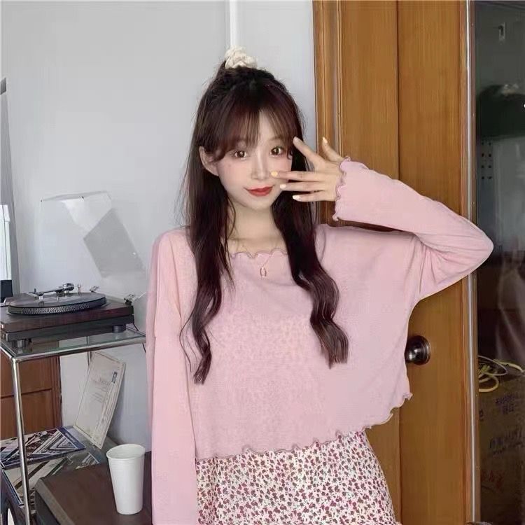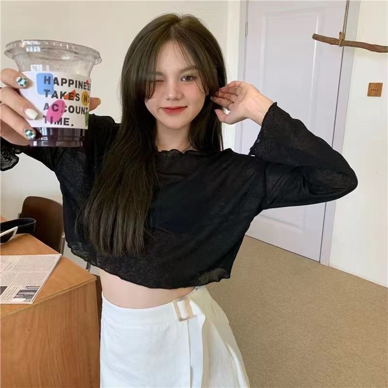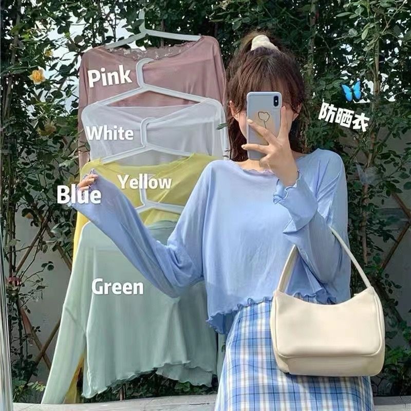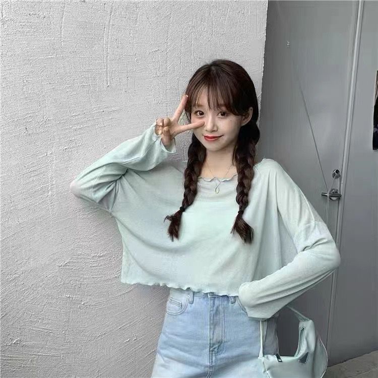 冰丝针织衫女夏季宽松慵懒套头短款上衣罩衫薄款防晒衣女长袖外搭