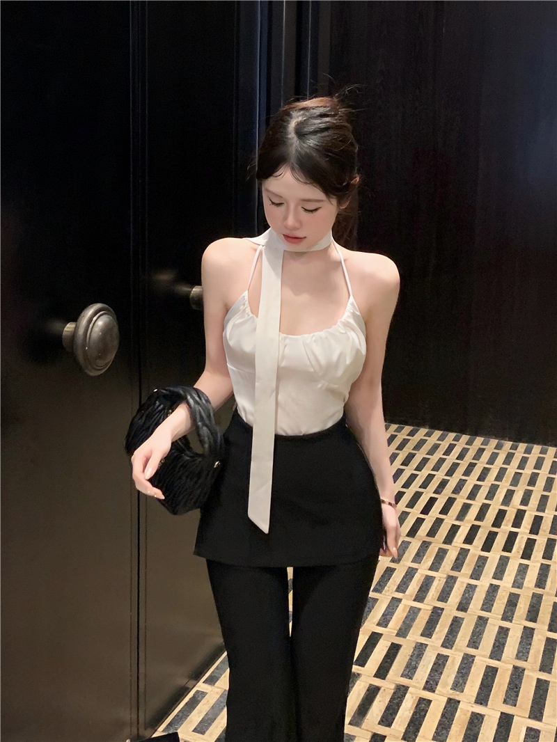 夏季蝴蝶结挂脖式针织小吊带内搭美背小众设计纯欲抹胸打底衫上衣