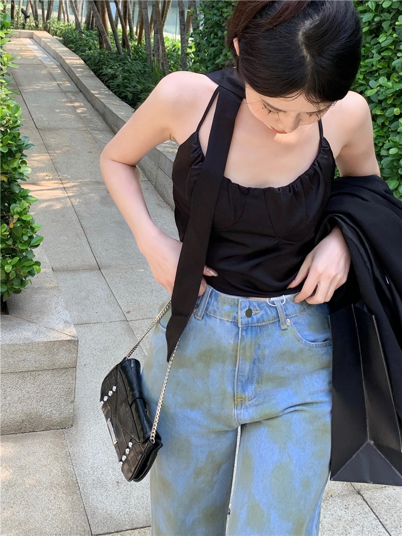 2022夏季韩版木耳边挂脖可调节ins女潮纯色百搭闺蜜装打底小吊带