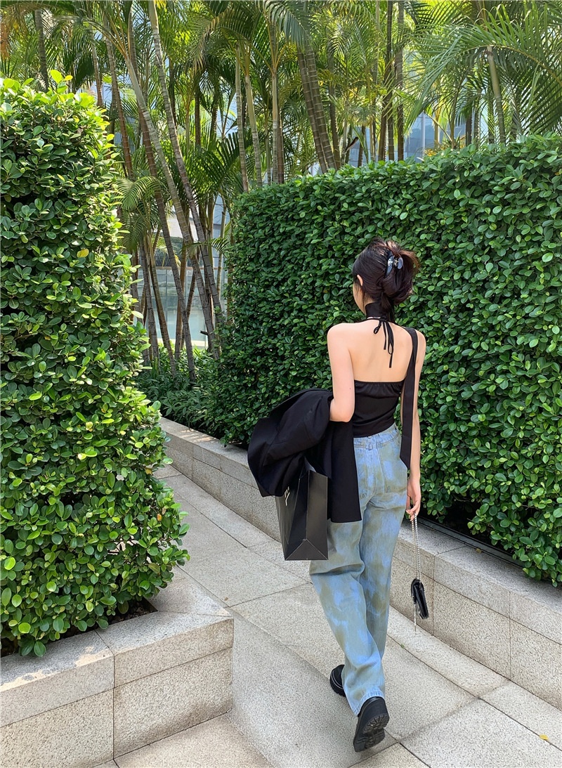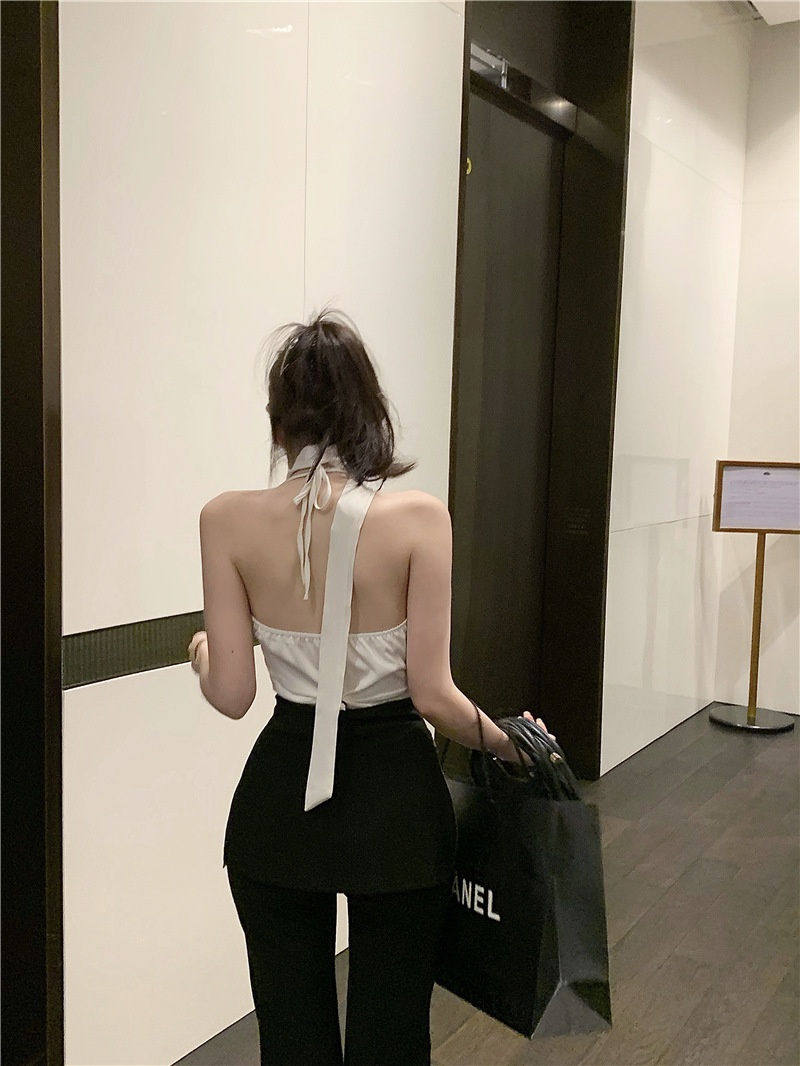 夏季短款纯色法式针织薄款挂脖吊带性感辣妹外穿露背加工定制上衣