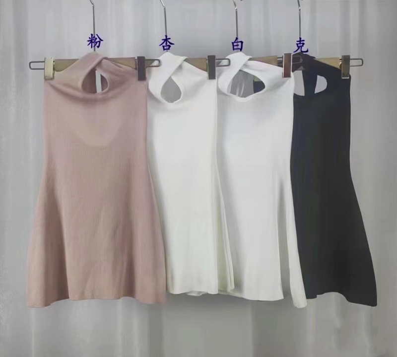 夏季短款纯色法式针织薄款挂脖吊带性感辣妹外穿露背加工定制上衣